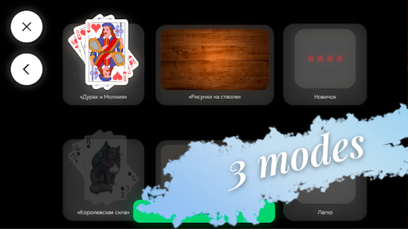 Russian Cards 2 has various game modes, including an exciting story mode, free play for maximum flexibility, and an endless mode to test your stamina. Go through training to get acquainted with the rules of the game.