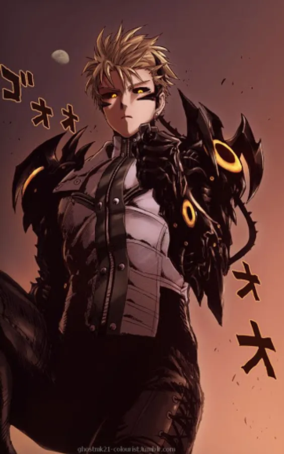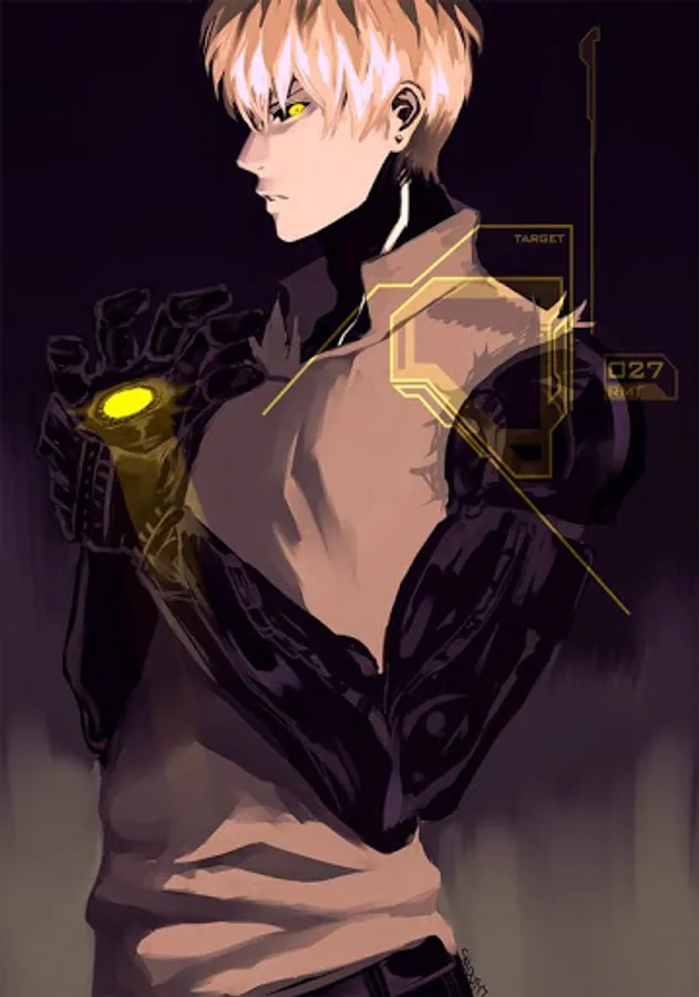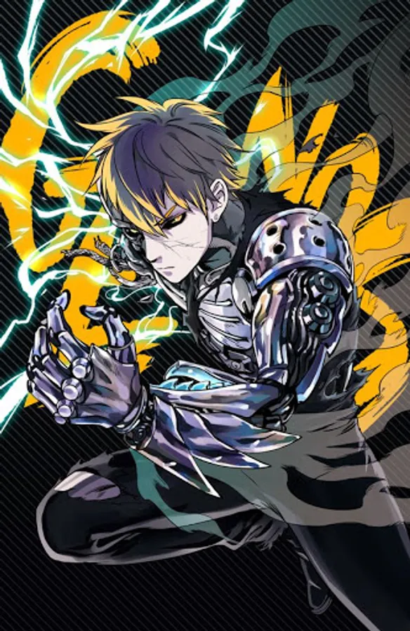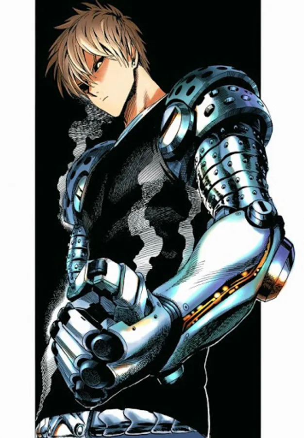 Genos (ジェノス, Jenosu) is the deuteragonist of One-Punch Man. He is a 19-year-old cyborg and the disciple of Saitama. He is always aiming to become more powerful and he fights for justice. Under the Hero Association, he is given the name Demon Cyborg (鬼サイボーグ, Oni Saibōgu) and is currently S-Class Rank 14.