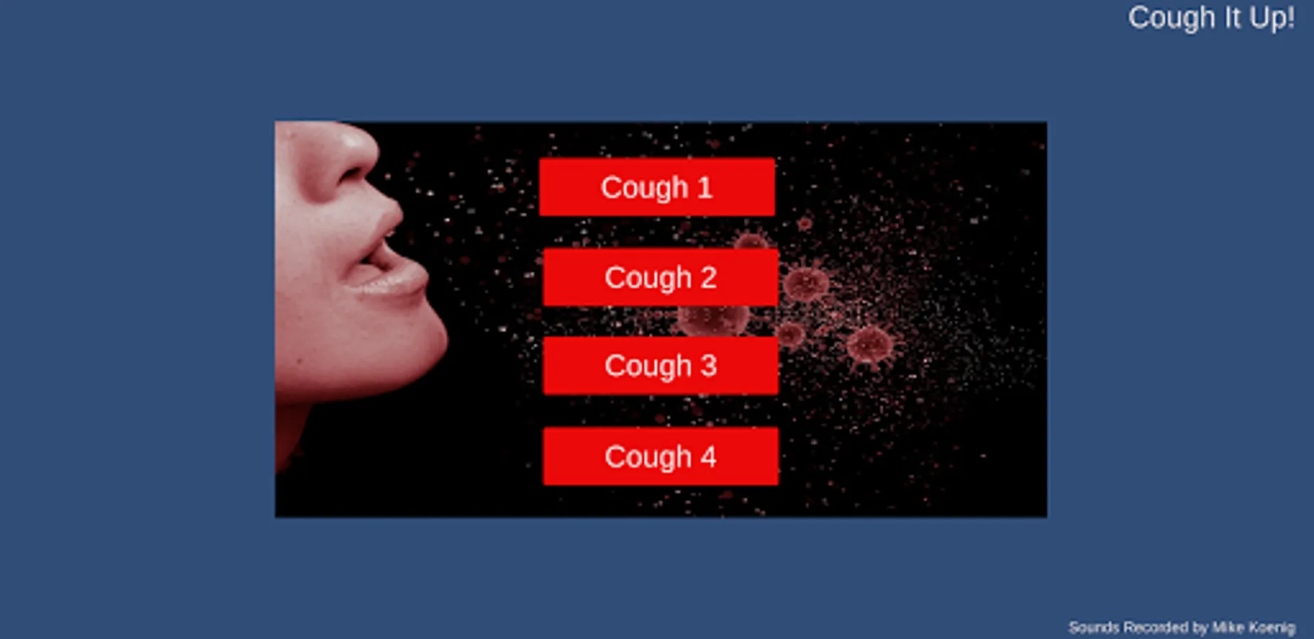 Cough it up is a gag humor app. Press a button to hear a cough.