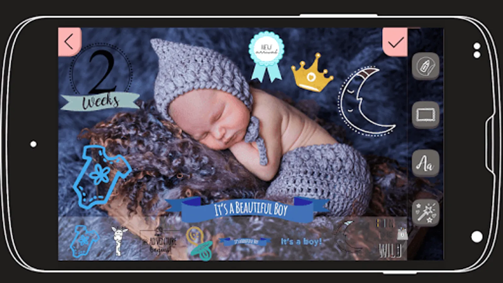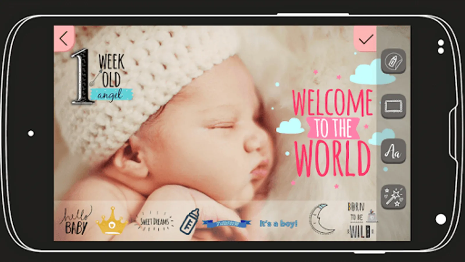 Create beautiful images and emotional posts you can share with everyone you care about! Don't forget to decorate photos with lovely frames, like with any other newborn baby photo editor app. There are so many cute options that are waiting for you! Prepare to be amazed and wait no more, download it now. What's great about “Baby Story Photo Editor – Milestone App” is that you can edit, save and share anything you make in just a few simple steps. Once you're finished editing, you can write text on photo and make your pictures even cuter. So, this “monthly baby photoshoot app” is free and so cool, that your images will look like they have been decorated by a professional graphic designer. And, believe it or not, this milestone photo editor is about to become the most “precious baby app” for new parents in your phone!