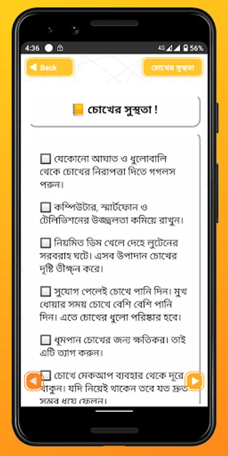 📒 We have many such tips in this application. Through the proper use of which. We can take care of our eyes. And if any eye problems remain in the early stages. I will be able to give the solution in my own way. The items in this app are sorted by category