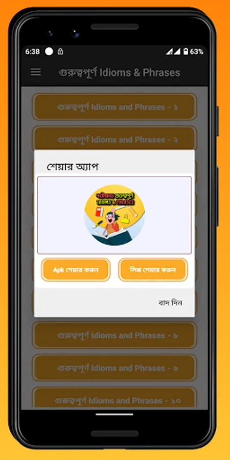 In case of viewing English pictures. Idioms and Phrases are very useful in everyday conversation. We have already noticed that. Idioms and Phrases can also be observed in different classes of examinations. Or what are called proverbs and phrases in Bengali. There is a separate section on this topic. So to master this subject. As we need to speak and understand in our daily lives. In the same way, getting good marks in exams is also important. Proverbs do not follow any rules of grammar. These are some common English phrases. You will get all the Bengali idiom lists in this app. The main goal is to know Bengali and use it in real life.