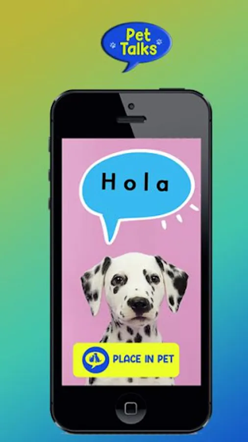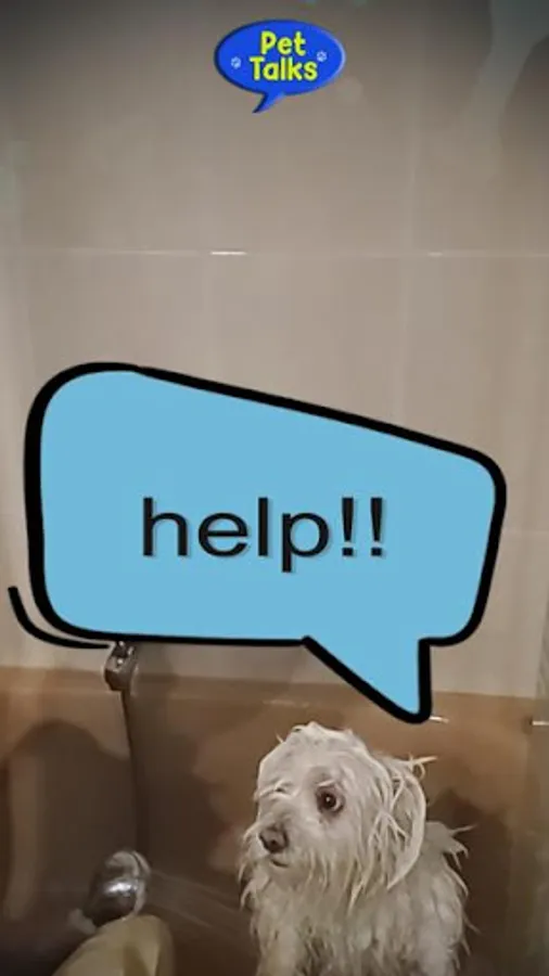 Install the Pet Talks app on any mobile, write your pet's thoughts, select the clouds or bubbles design and then place your message on your pet.