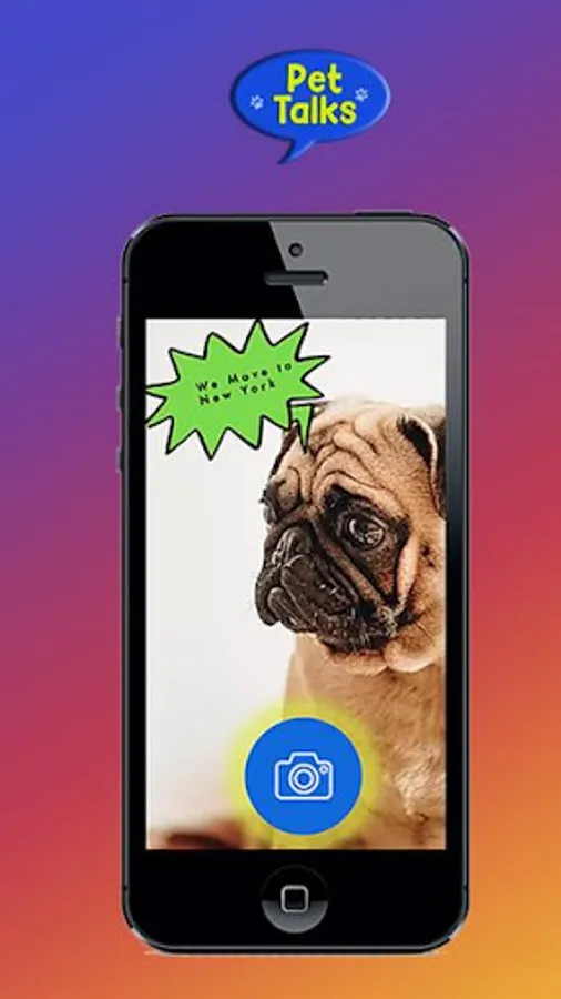 Pet Talks is an application requests the permission to open your phone camera to place text bubbles on your pet.