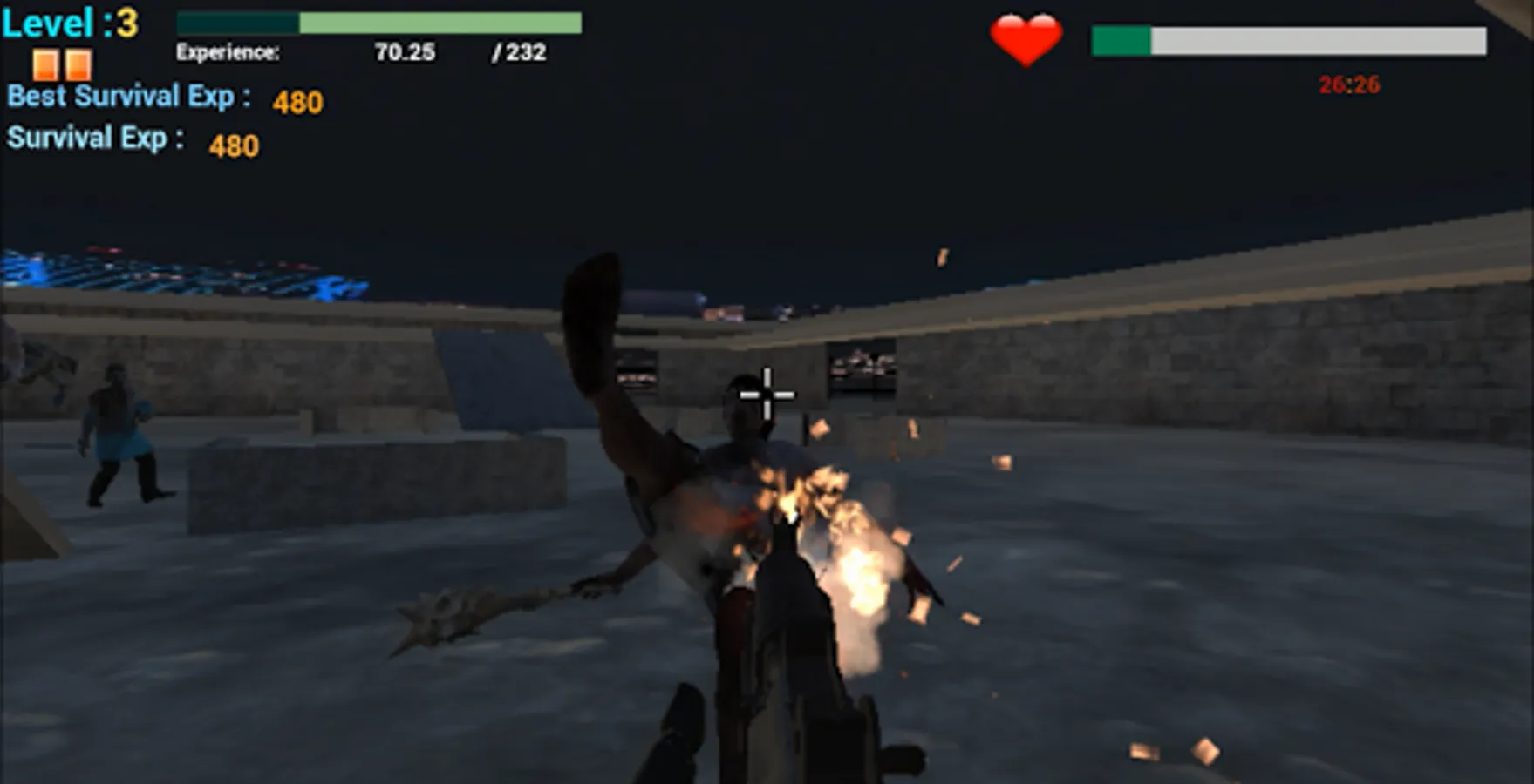 Currently, the town is now under Zombies. Kill them all and save the town. Zombies can't alive more than 30 minutes. Destroy them and survive for 30 minutes. After that, you would have called for the next city which is under danger.