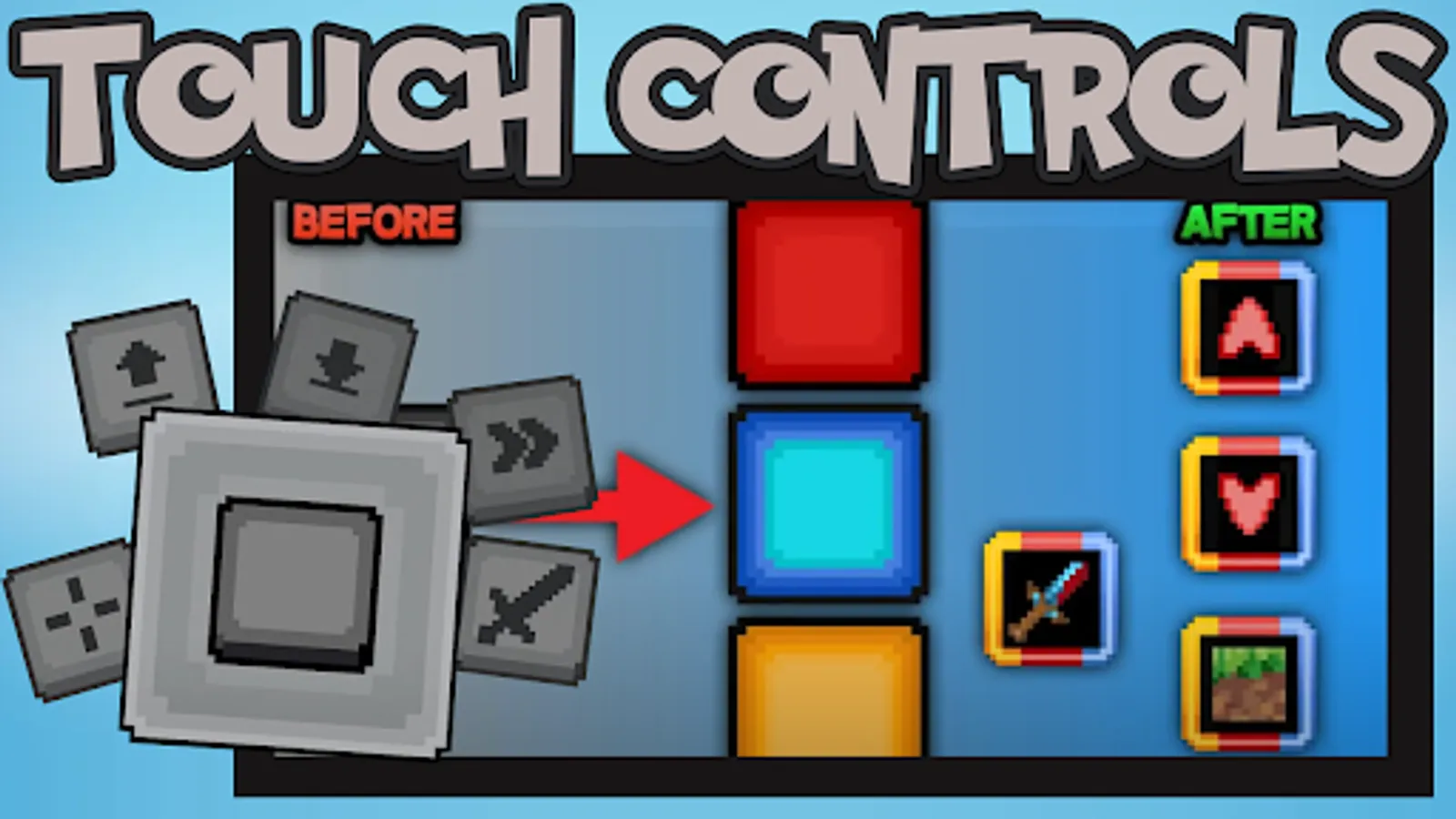 Hello gamers, adventurers and explorers. Got bored in the blocky world? It's time to try out our touch control addon which will allow you to change the most important part of the gameplay - control, vanilla control leaves much to be desired because the standard buttons look just awful.