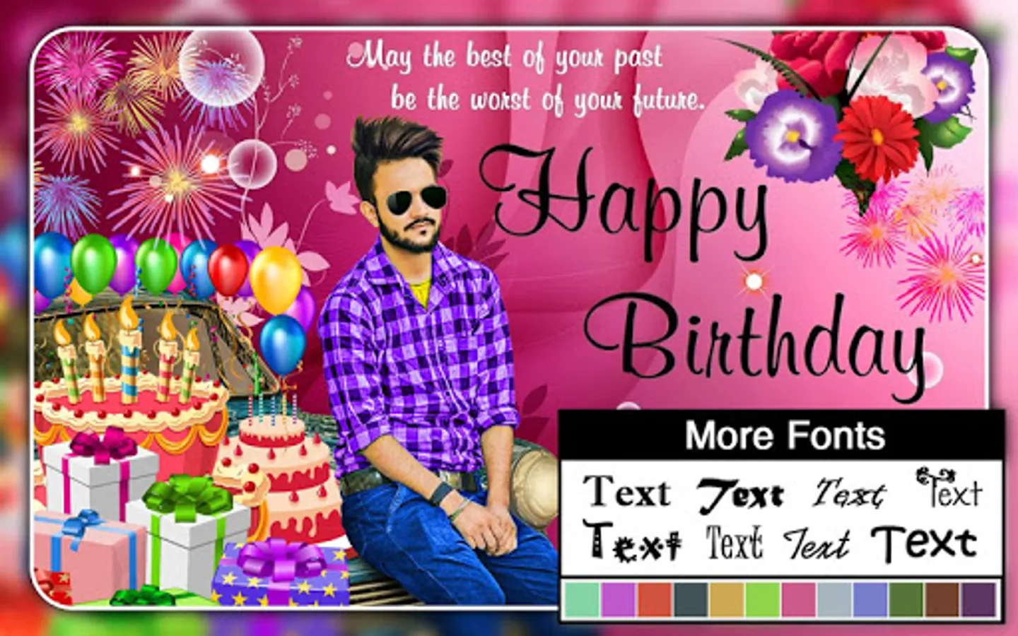 Write your name or Your Family member, Friend on Birthday Card. options using Birthday Photo Backgrounds, Frames using Stylish Fonts, Colors, Art Filters with Multiple Color Effect.
