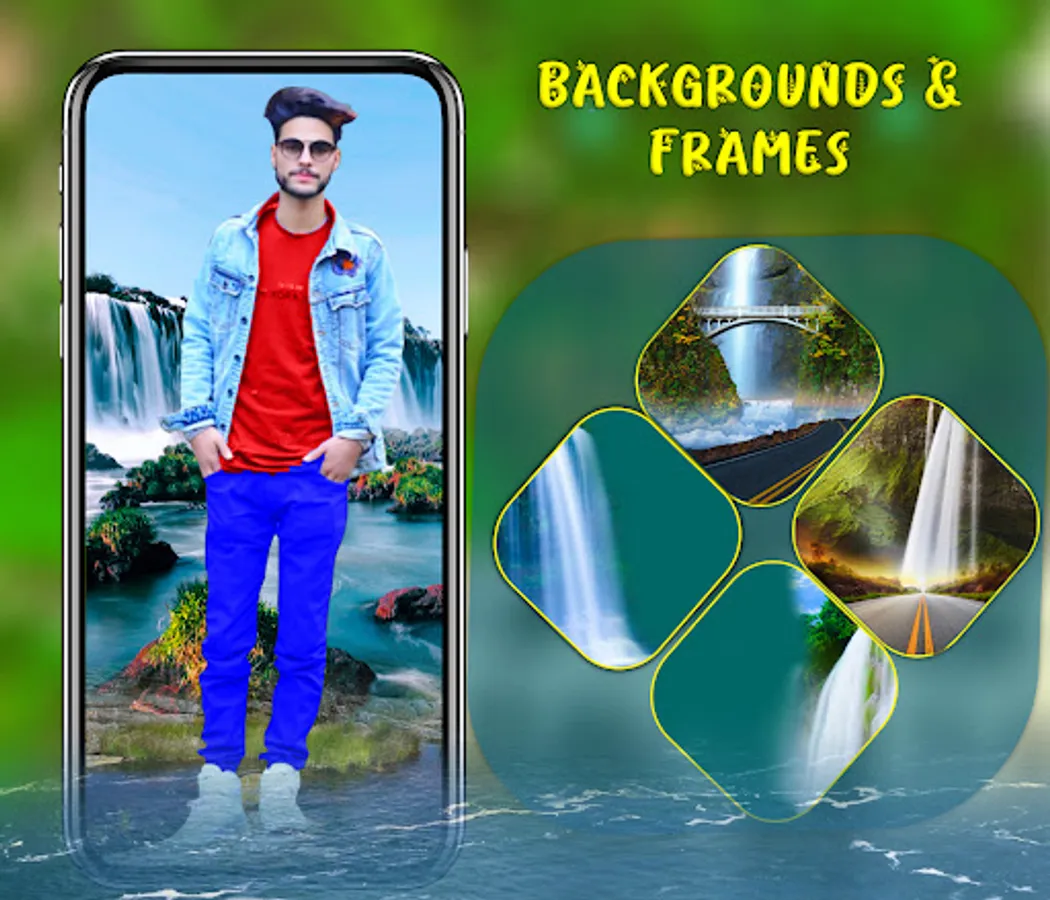 Waterfall Photo editor has collection of Landscape backgrounds and frames available .