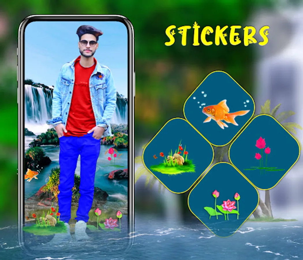 Water fal Photo editor has amazing more stickers. It has Music , Water fal Stickers, cake, Baloon.