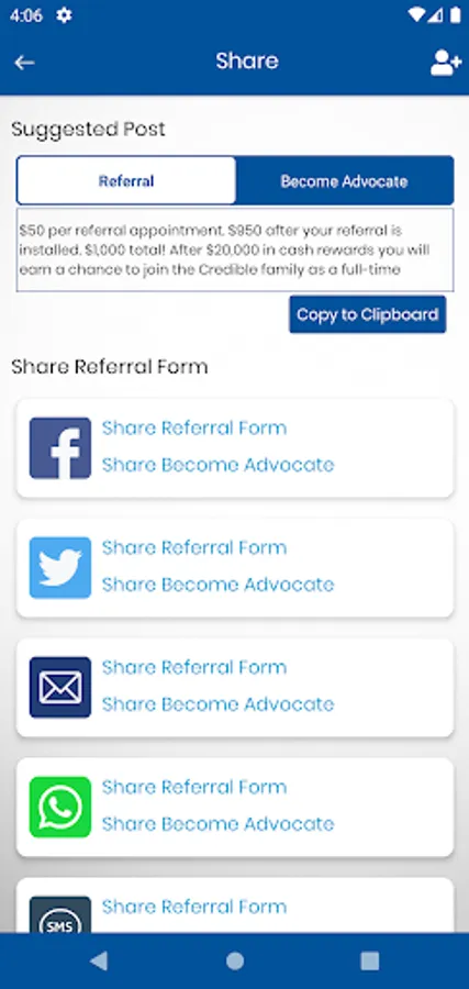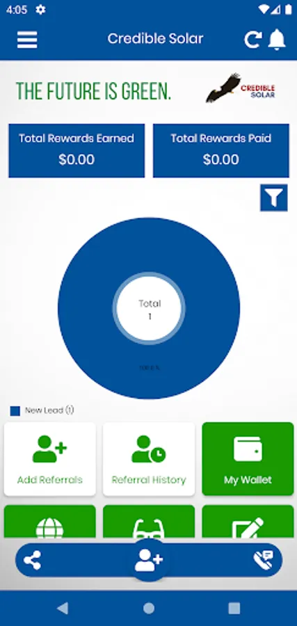 Credible Solar is a free app available for anyone to download and is used for those that want to earn rewards by sending referrals to Credible Solar. It is as simple as downloading the App, selecting the sales rep and registering. Once registered, you can begin sending referrals right away. It is the one app that will allow the user to easily submit referrals to Credible Solar and track the progress of your referral and rewards right on your mobile device. Referring has never been so easy.