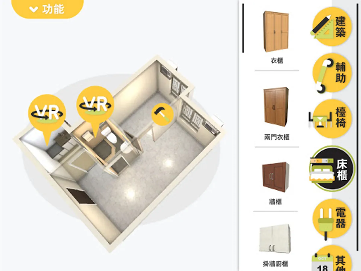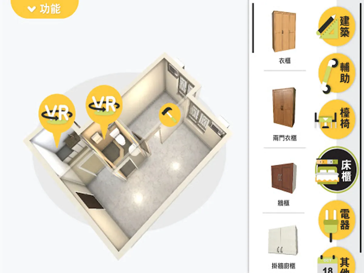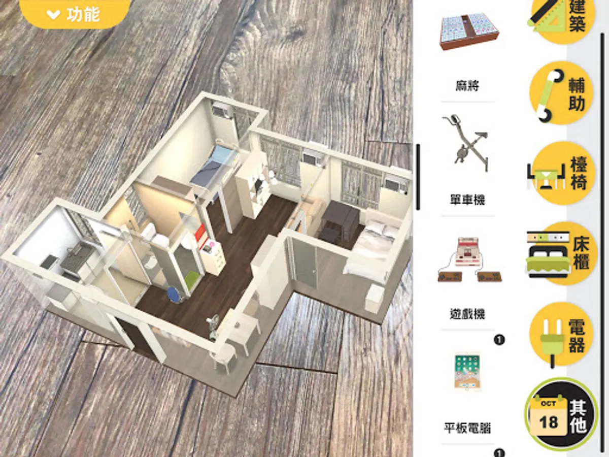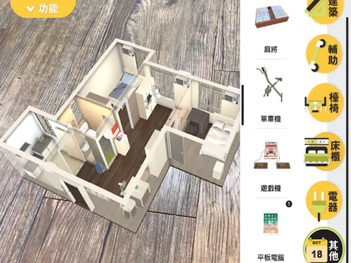 - 內置五個不同面積單位及過百款家具用品供選擇