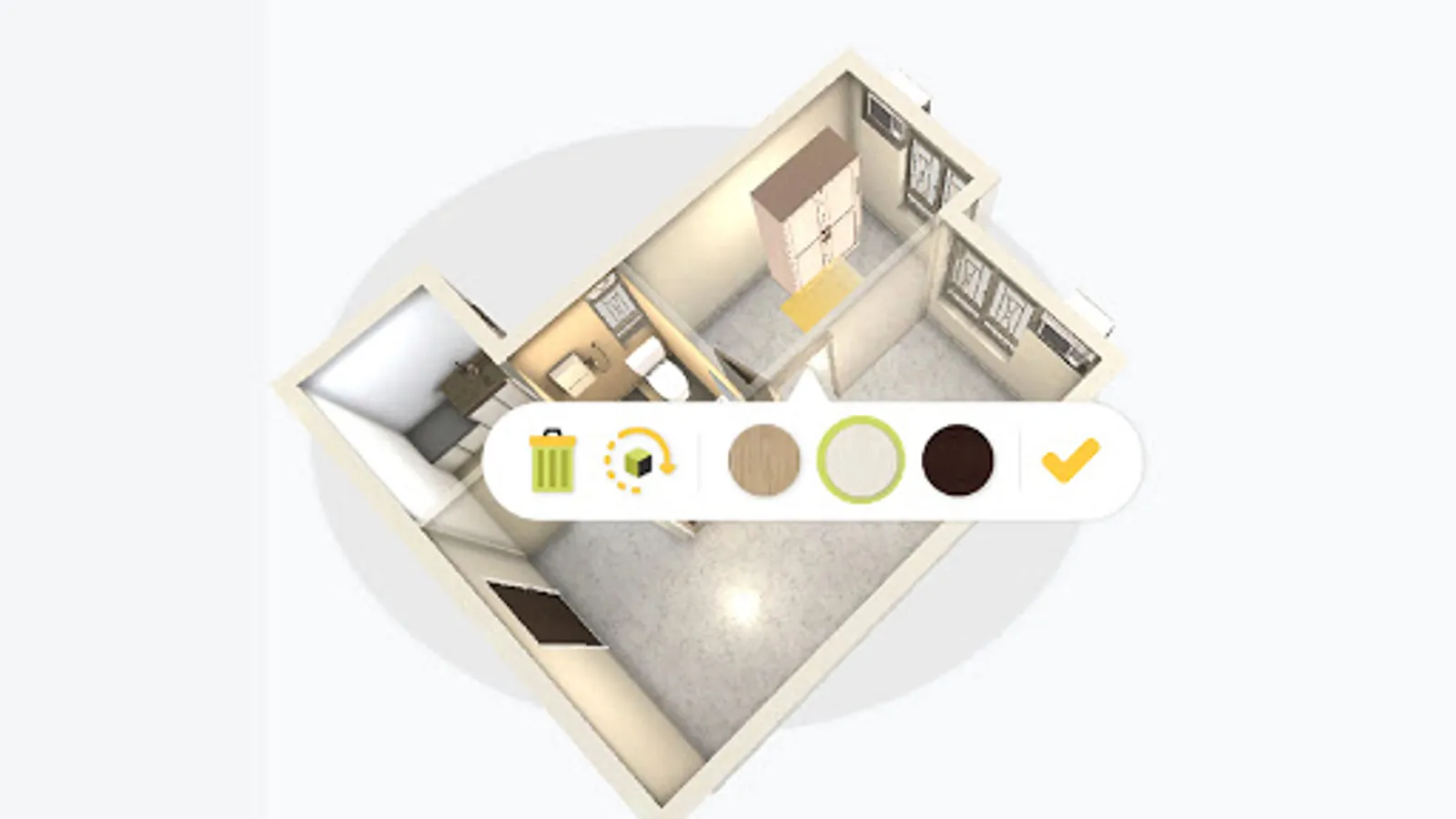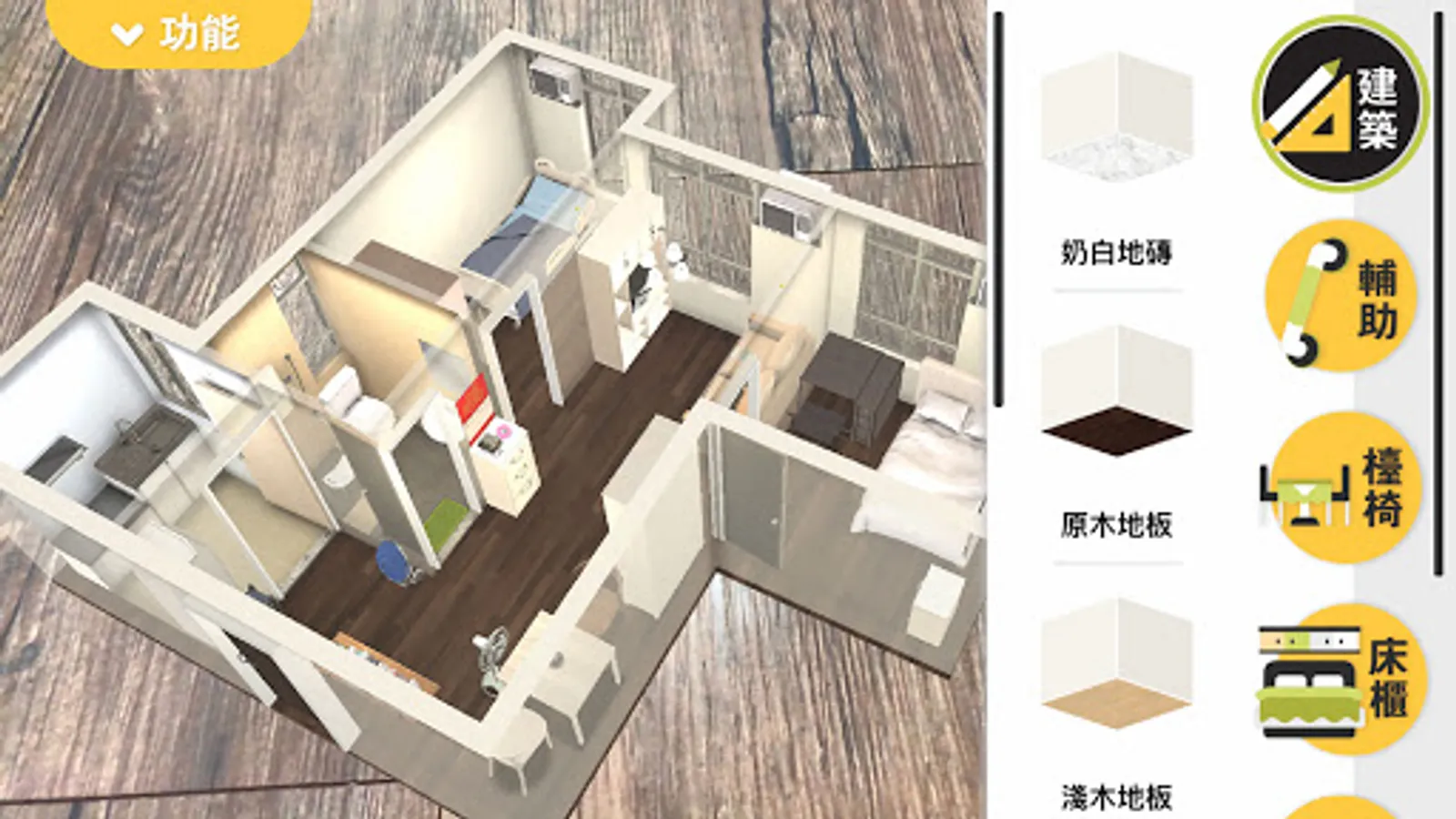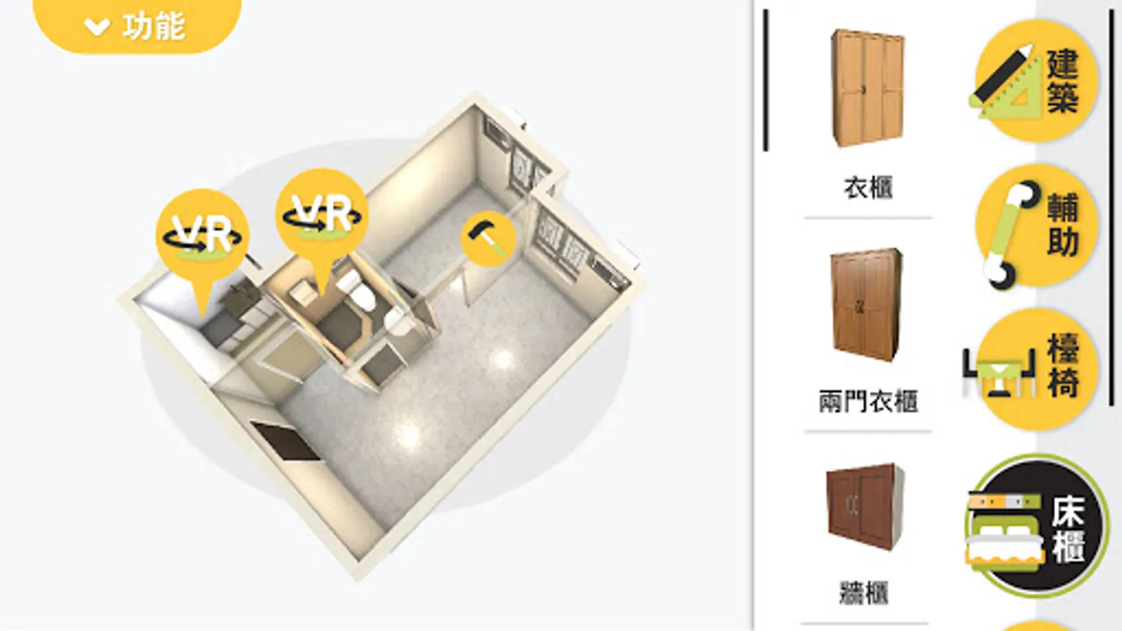- 內置五個不同面積單位及過百款家具用品供選擇