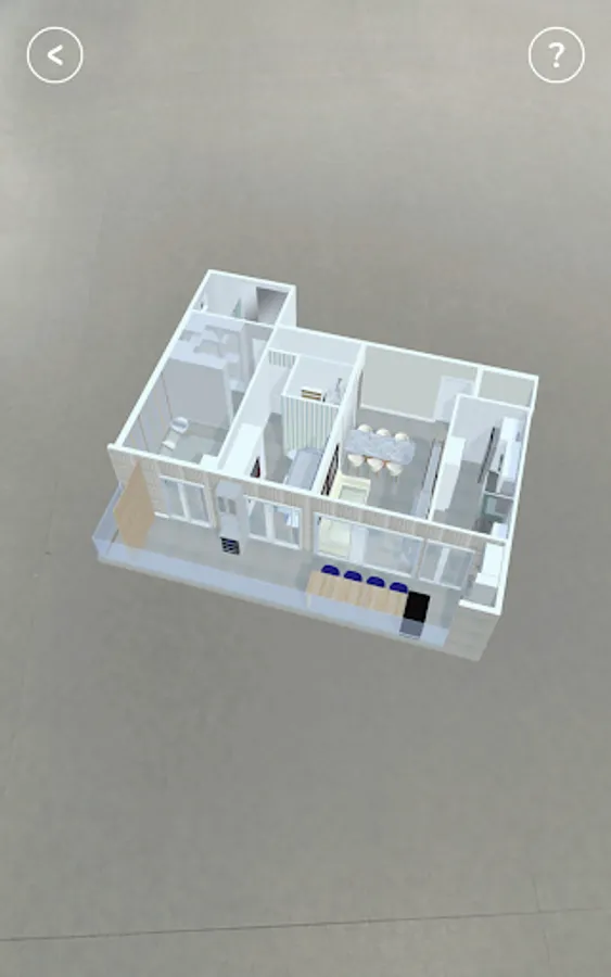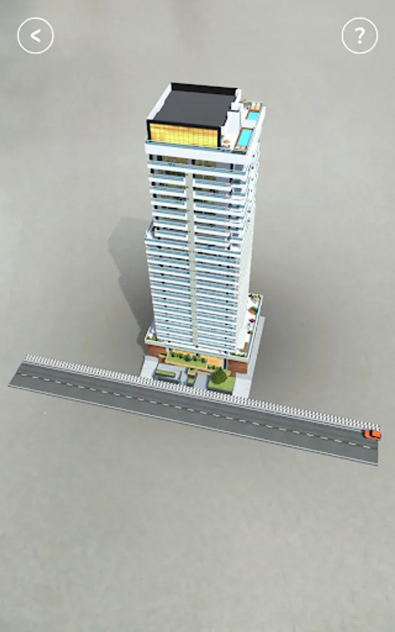 Using the Augmented Reality feature you will be able to see both the facade and leisure areas on the outside as well as the 02 decorated apartments.