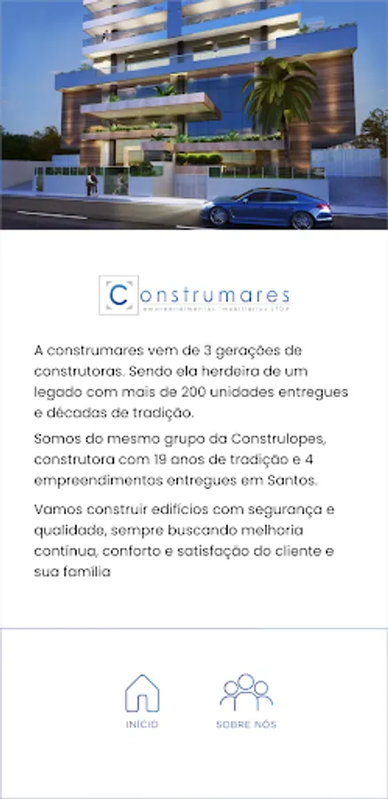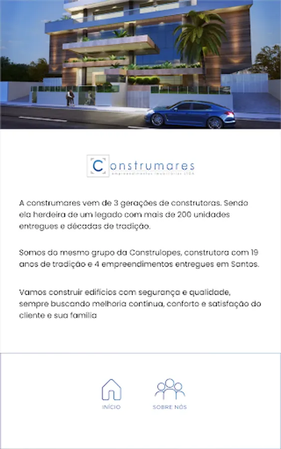 Through this application, you can visit the Coral Residence venture of Construtora Construmares located in the city of Santos-SP.