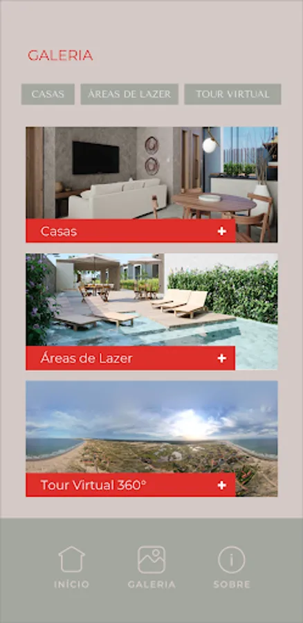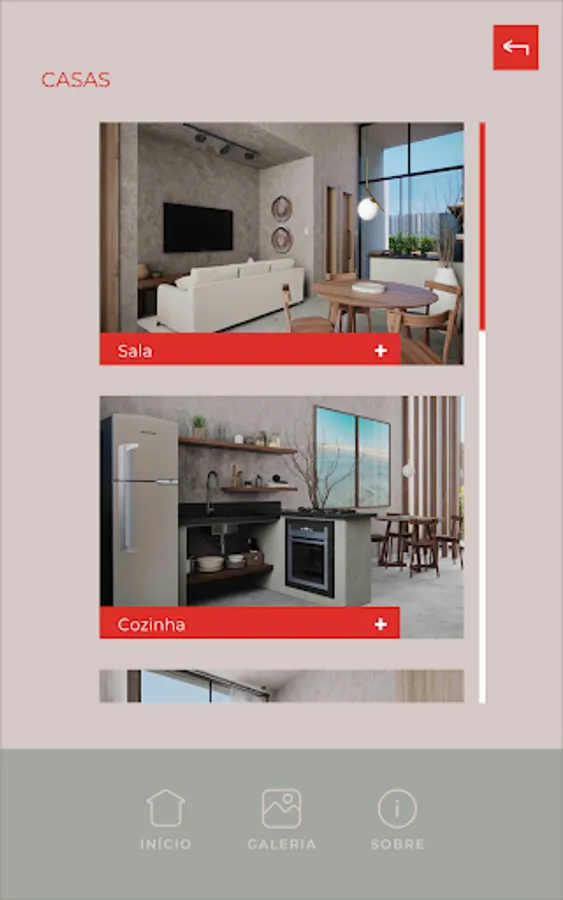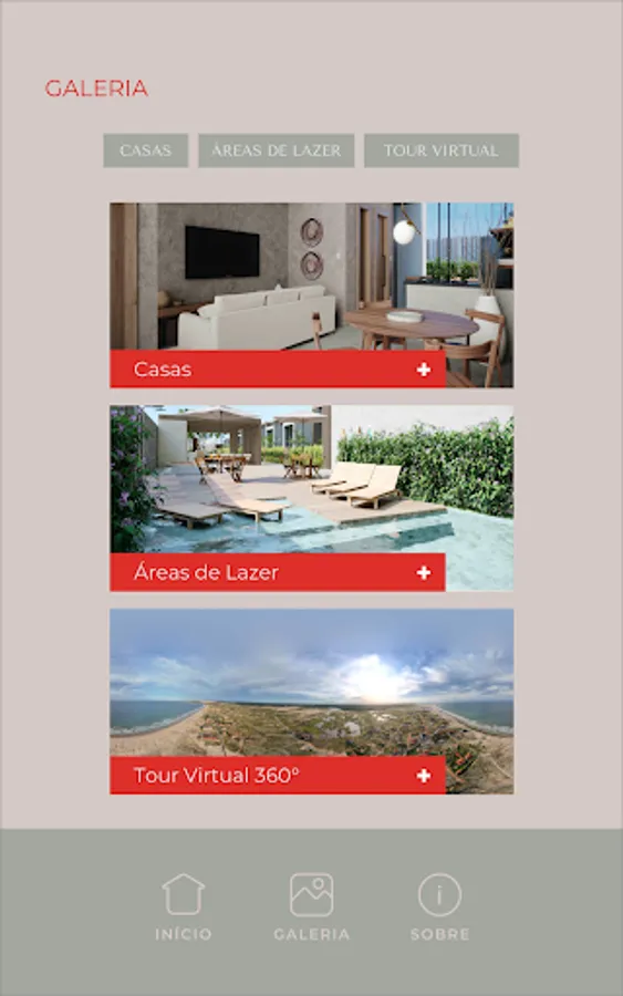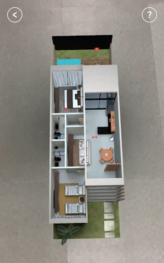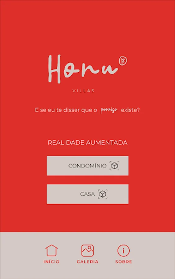 Through this application you can visit the condominium and one of the houses in Augmented Reality, knowing all the leisure areas and the distribution of the rooms. Go further, click the immersion buttons and walk through the full-size project.