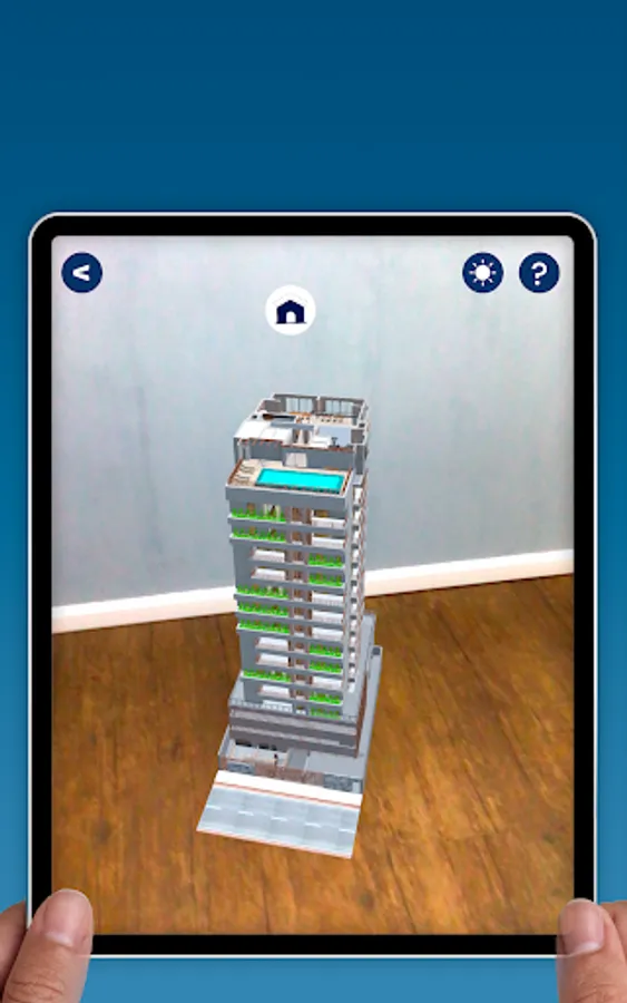 Through the app, you will be able to explore the 3D project in augmented reality and access the facade, the pool area and a stunning roof that reserves the comfort you deserve.