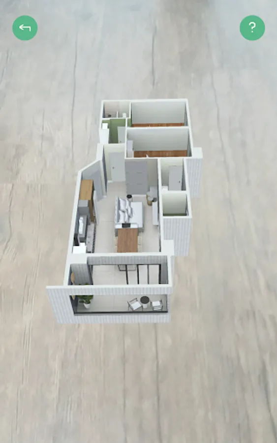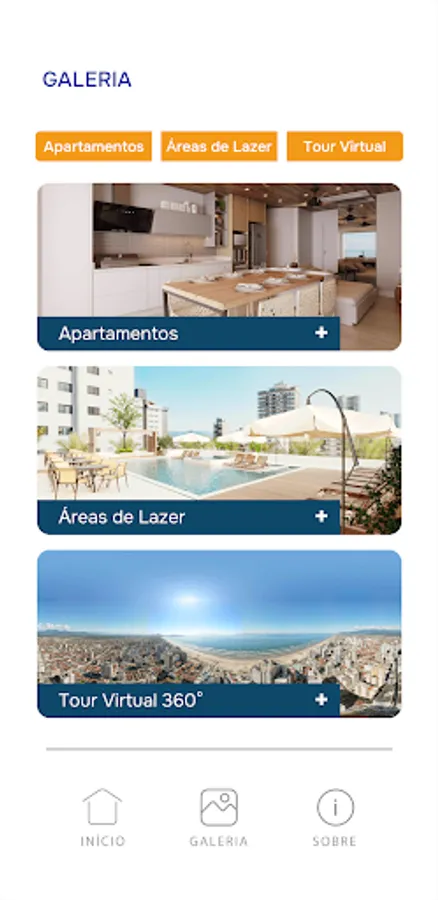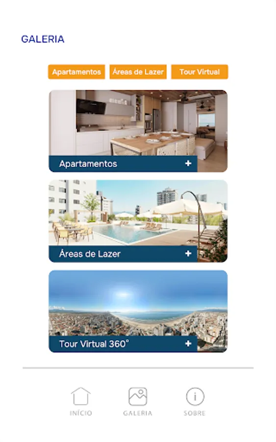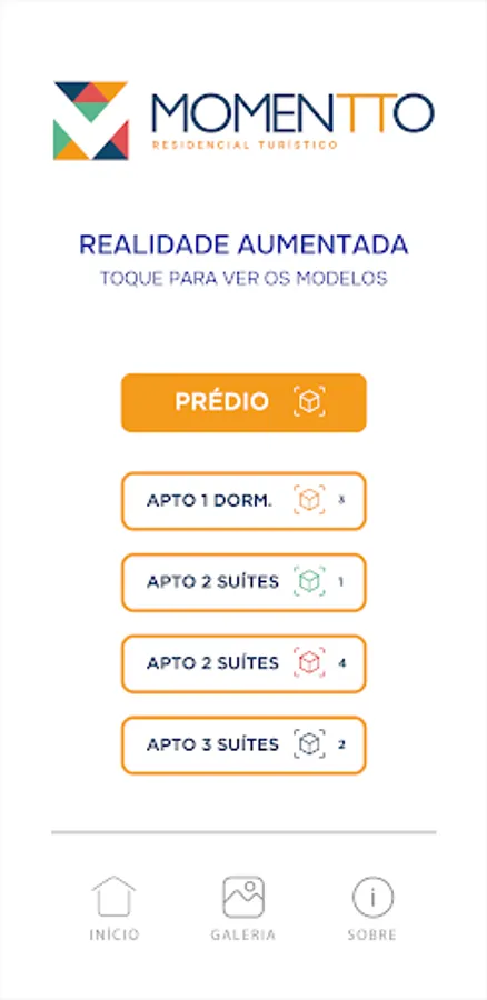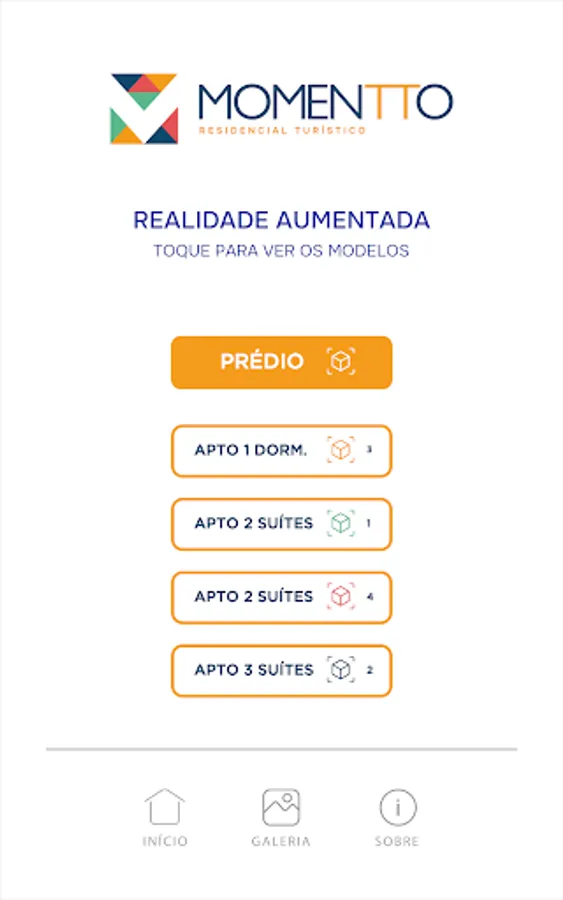 The application brings views of the 3D project in augmented reality, showing every detail of the development, and a gallery with perspectives of common areas and apartments.