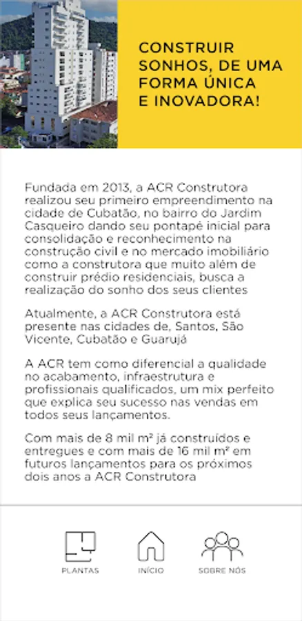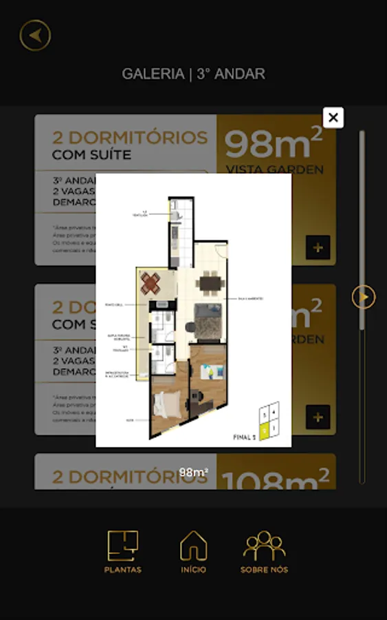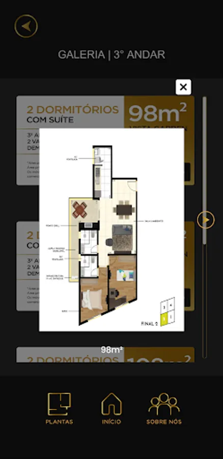 In a completely innovative way, through Augmented Reality technology you will be able to see the enterprise from wherever you are. See also in the gallery the different floor plans of the apartments and the information about the construction company.