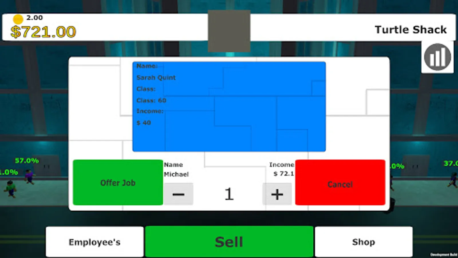 Citizens move across the screen and it's your job to decide who is worth hiring.