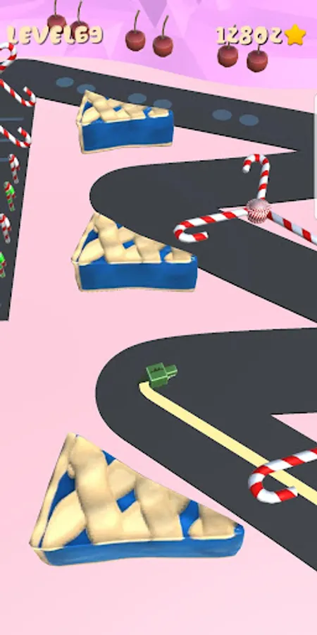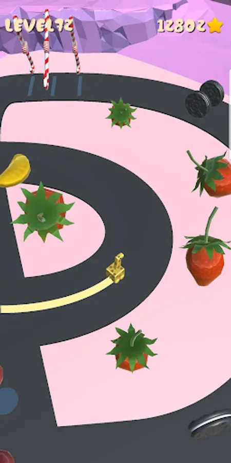 Help the tiny creatures navigate through the candy land.. Tap on the screen to move your creature to the candy bowl. Avoid the obstacles.