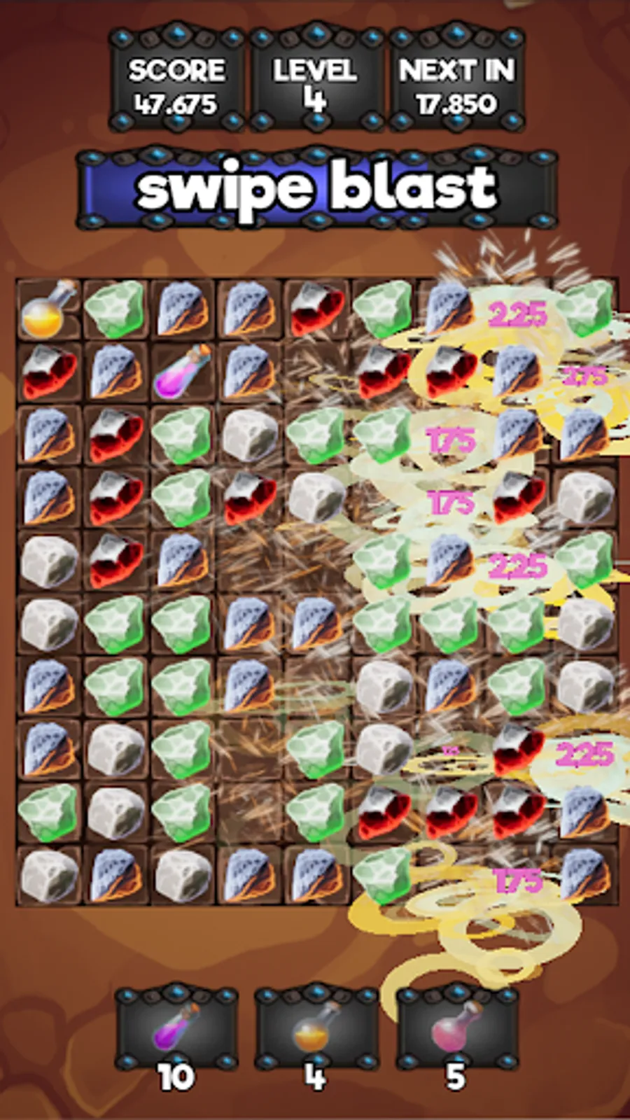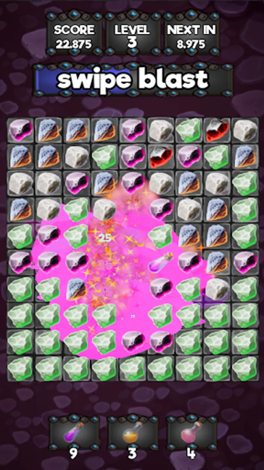 Pop Stones Gem Swipe Blast is an arcade style endless match-3 swipe game. Can you keep swiping your gems together and blast those gems away before time runs out?