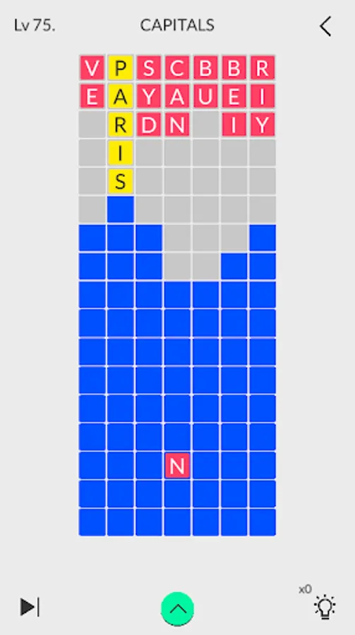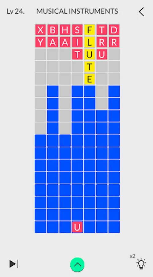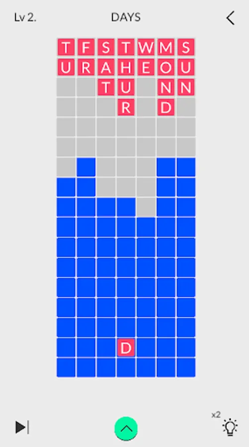 2 letters of each word are initially spawned and the player has to place each new letter that spawns in the correct position to complete the word.