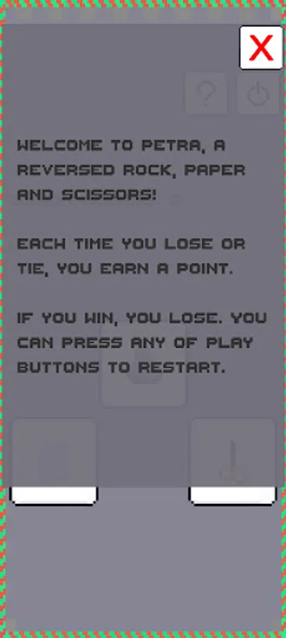 Welcome to Petra, A reversed rock, paper and scissors where you earn points by not winning!