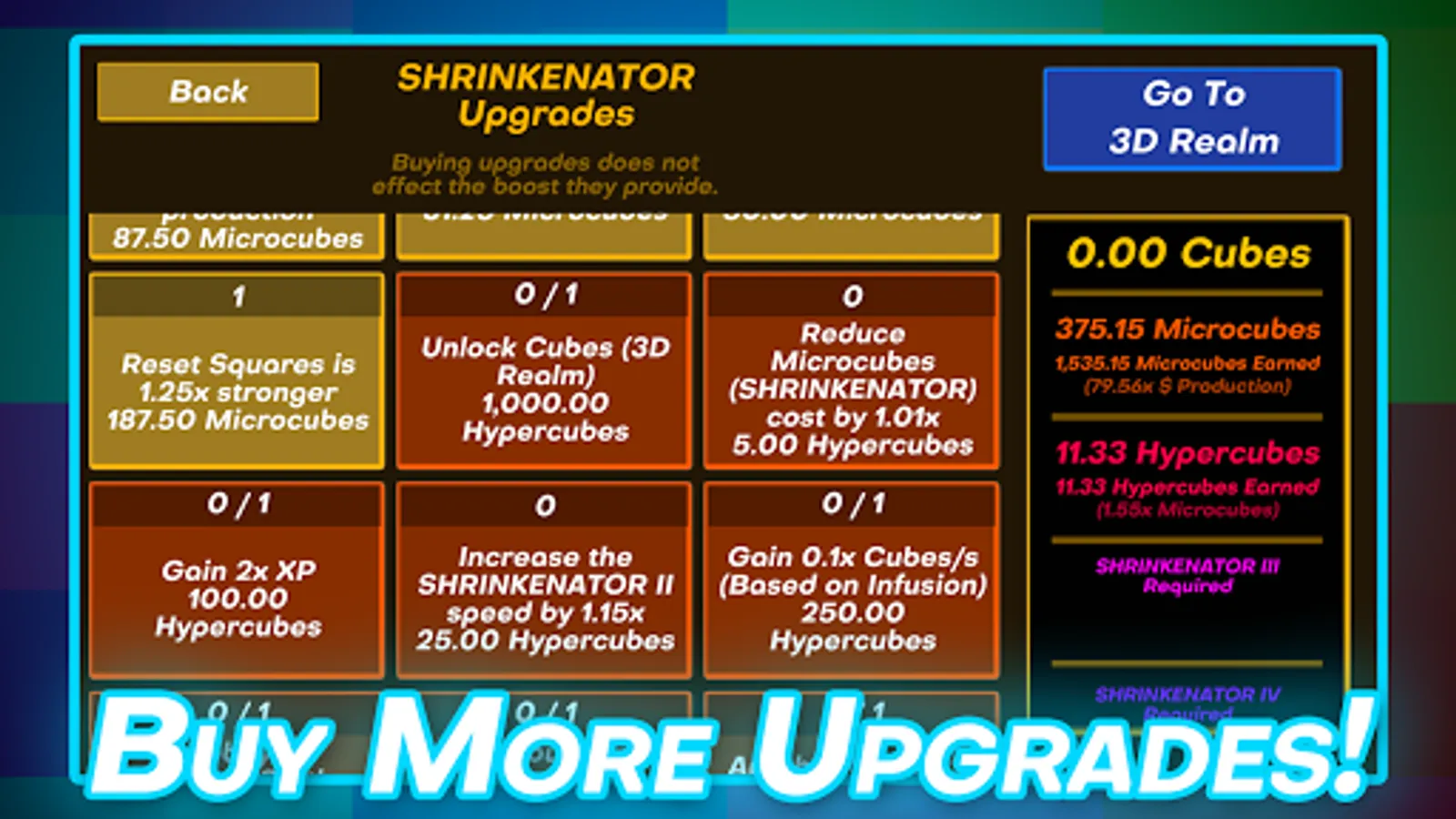 3D Realm - Unlock planes within worlds to create even more squares and different types of money!