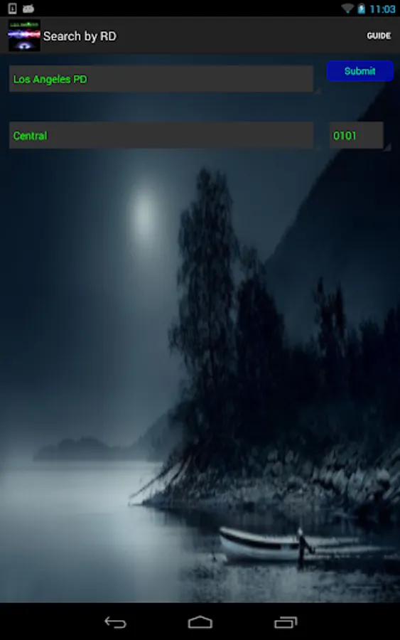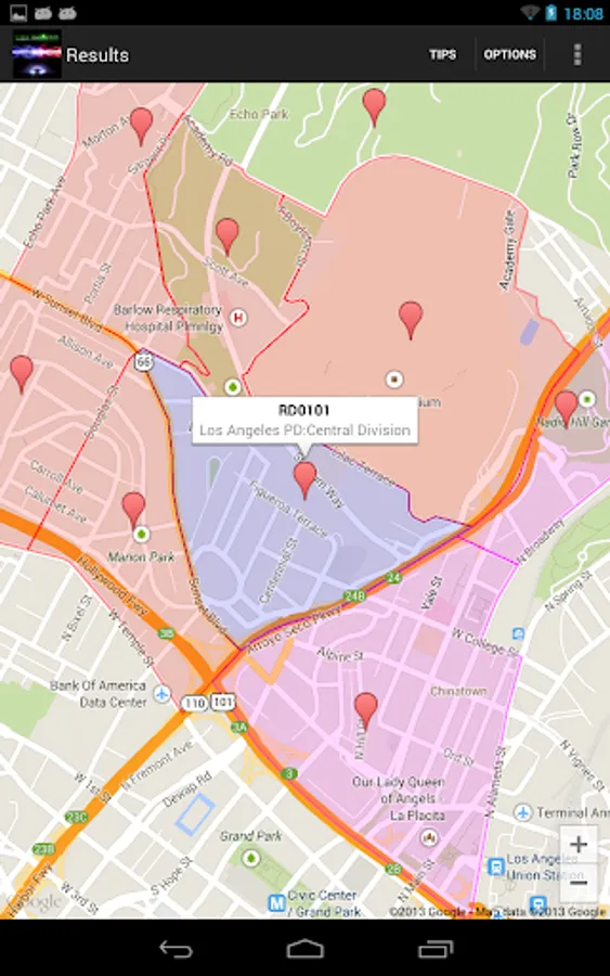 This application is meant to provide a simple way to look up a Reporting Districts (RD) through an address, cross streets, specific RDs, or your current location.
