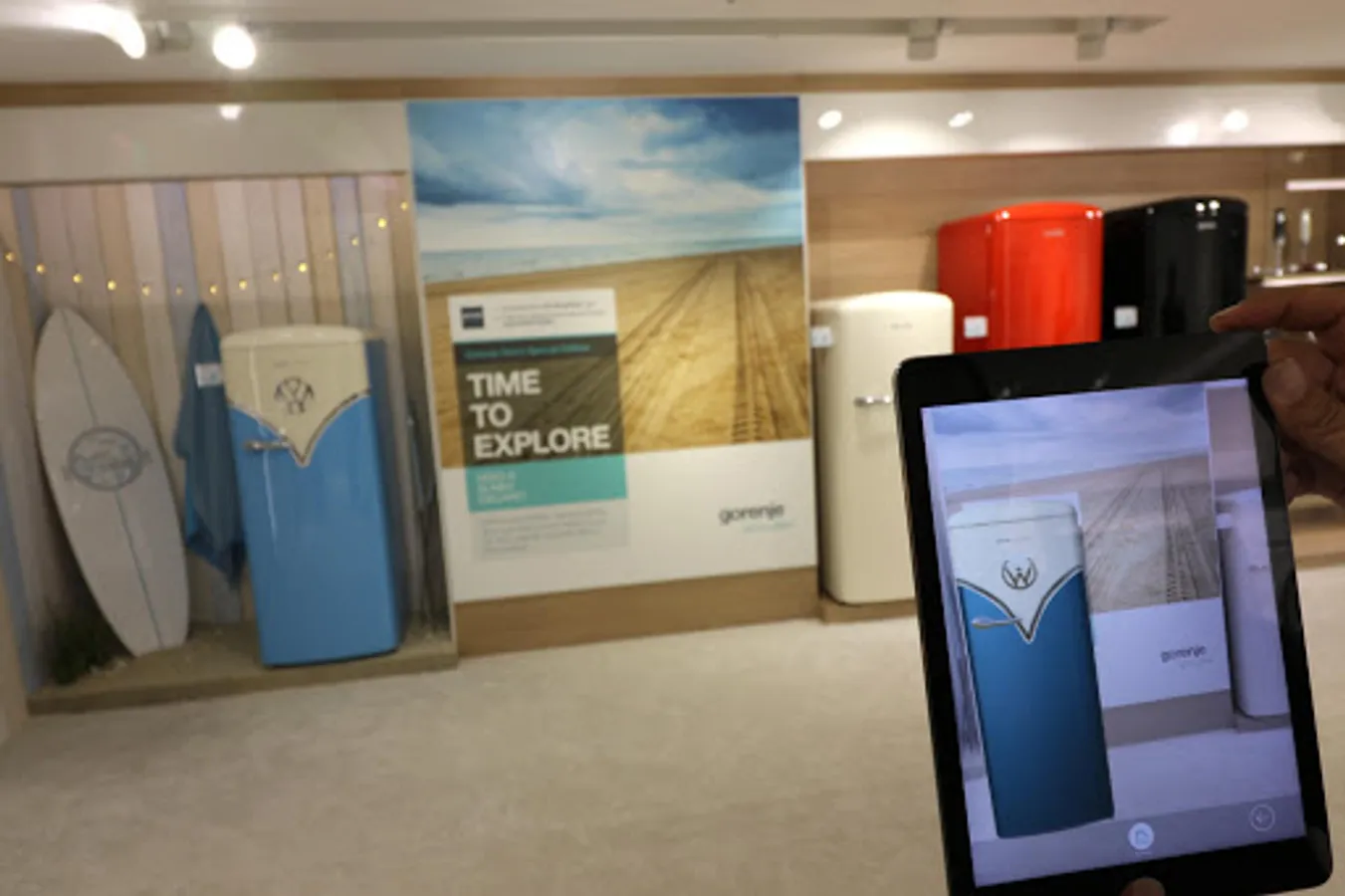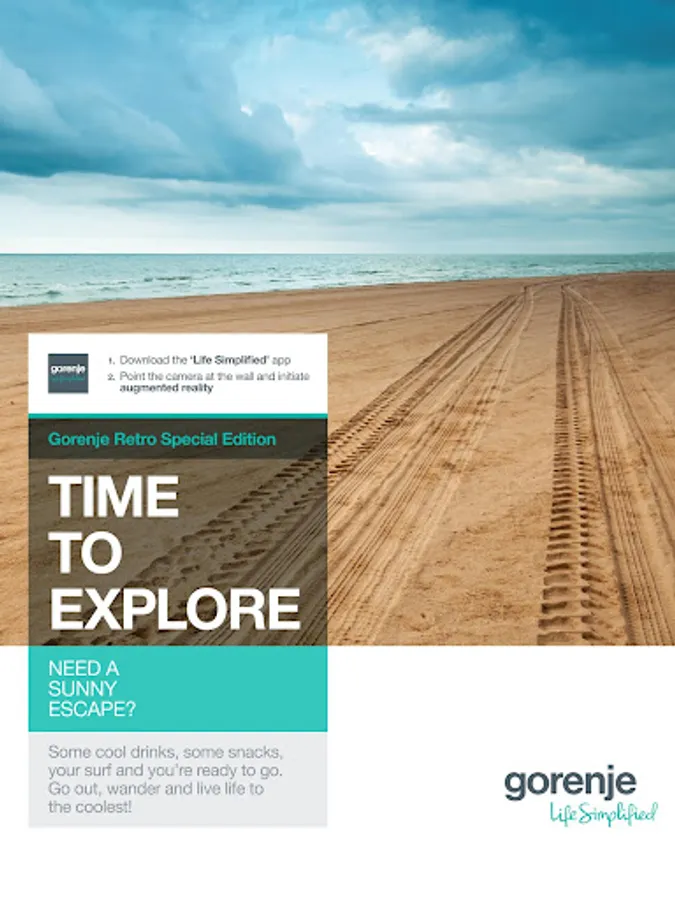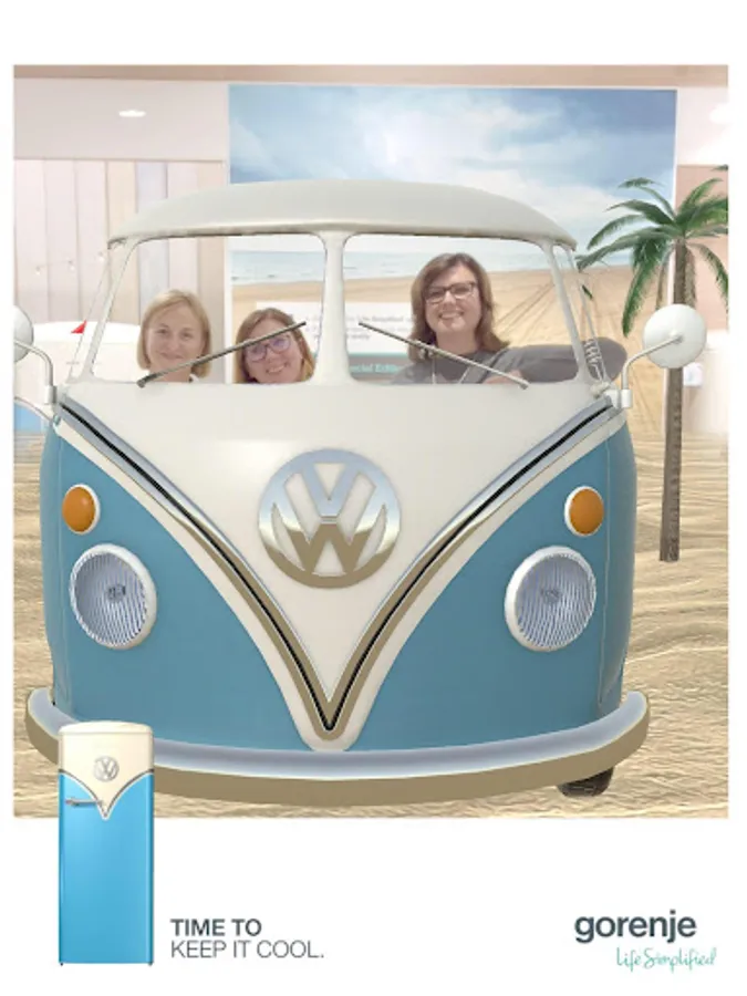 Explore the Gorenje Retro Special edition refrigerator in augmented reality. Discover the fun side of the refrigerator that draws inspiration from the legendary Volkswagen Bulli van. Go on an adventure through its many colorful options and different environments from which you can take a souvenir - a memorable polaroid picture.