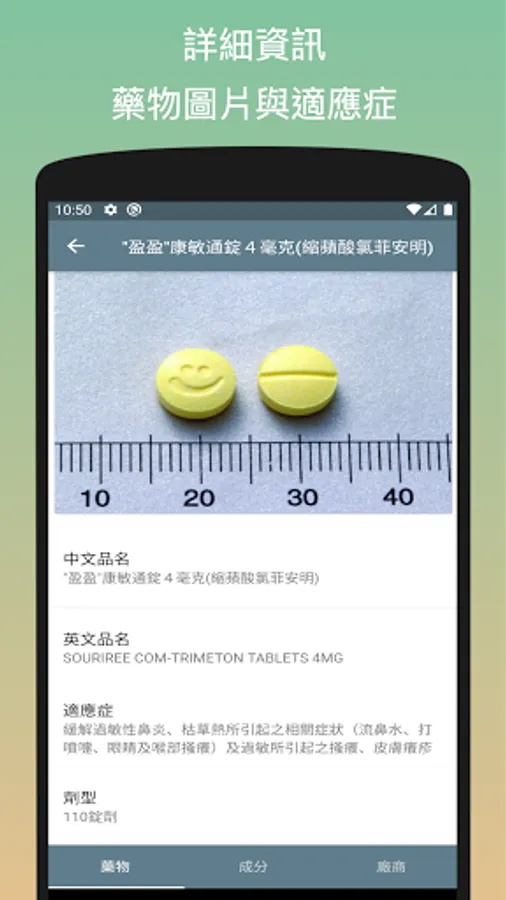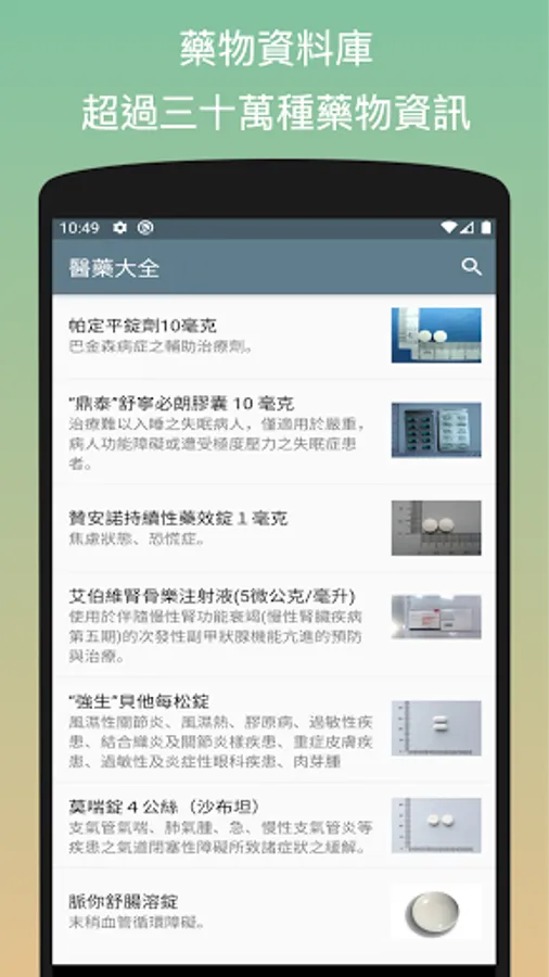 The "Medical Encyclopedia" APP provides you with detailed drug information (common drugs, drug ingredients, indications, drug appearance, drug pictures, usage and dosage, drug instructions, drug factory information, imitation orders)