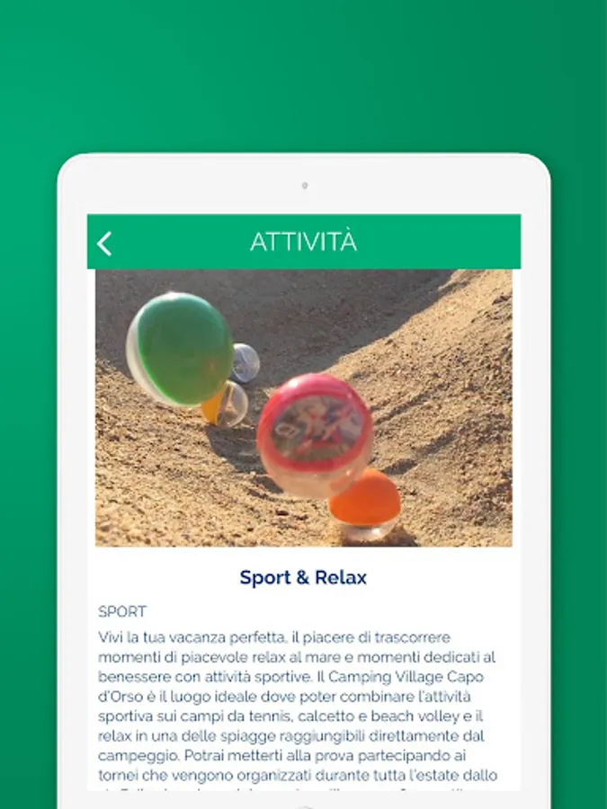 With the Capo d'Orso App you will have all the information just a click away during your holiday. Thanks to the delivery service you can order from the restaurant and market from the comfort of your accommodation. And in addition you can easily discover the animation activities, excursions and various services of the Camping Village. Discover all the features: download the App.