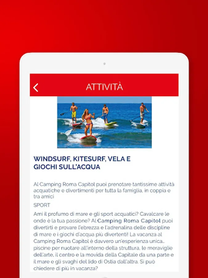 With the Roma Capitol App you will have all the information just a click away during your holiday. Thanks to the delivery service you can order from the restaurant and market from the comfort of your accommodation. And in addition you can easily discover the animation activities, excursions and various services of the Camping Village. Discover all the features: download the App.