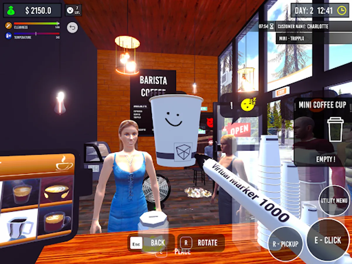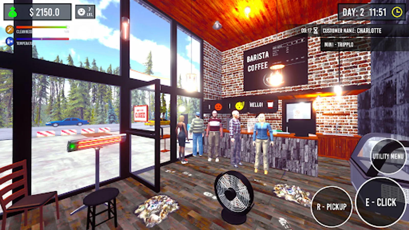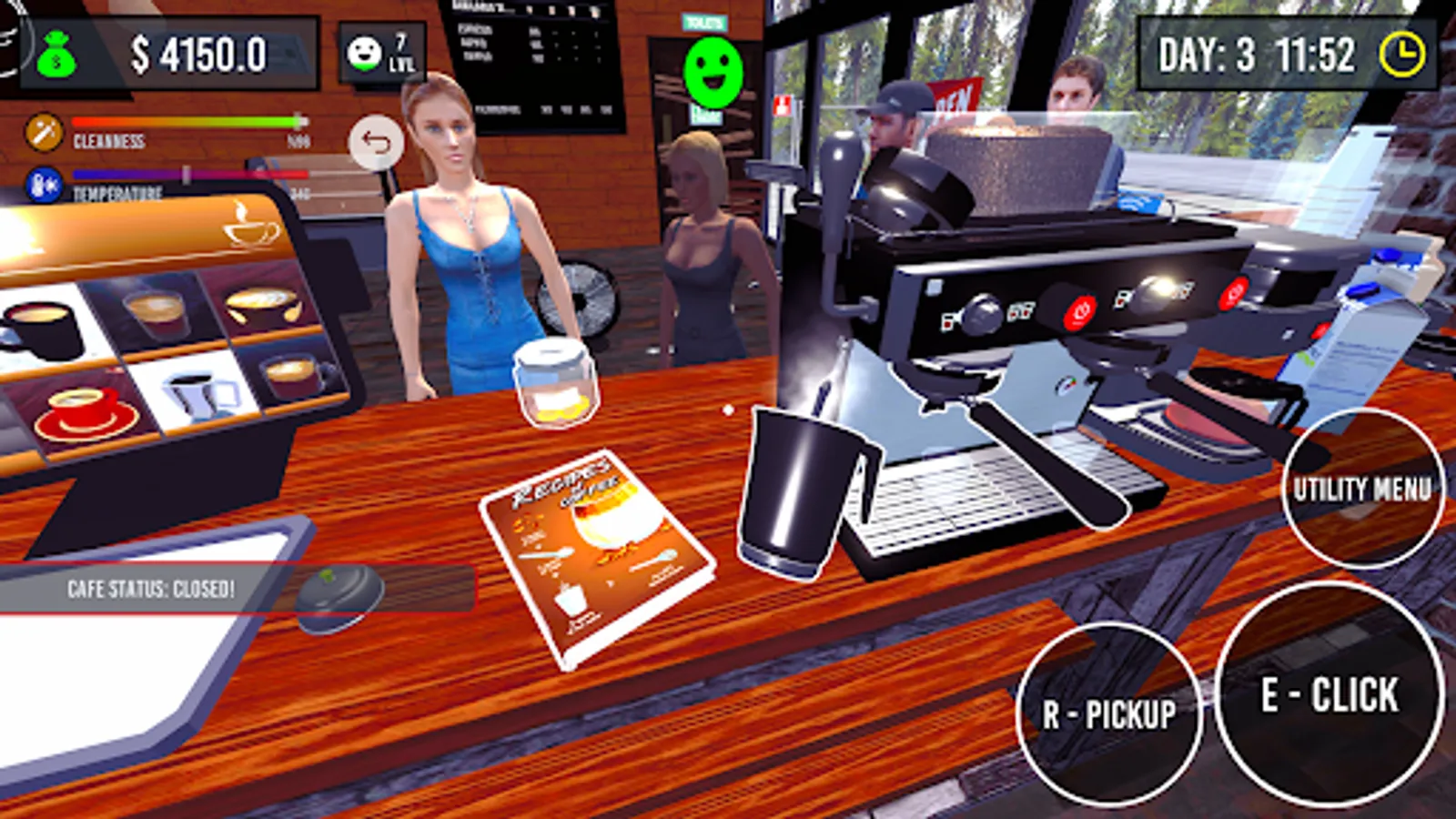 Barista Simulator lets you experience making a wide variety of coffees just like espresso, latte or even your special mix of coffees with a detailed coffee management.