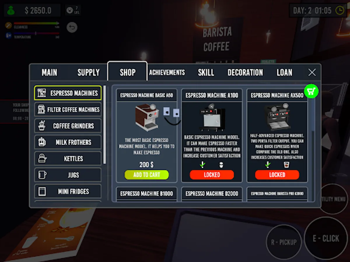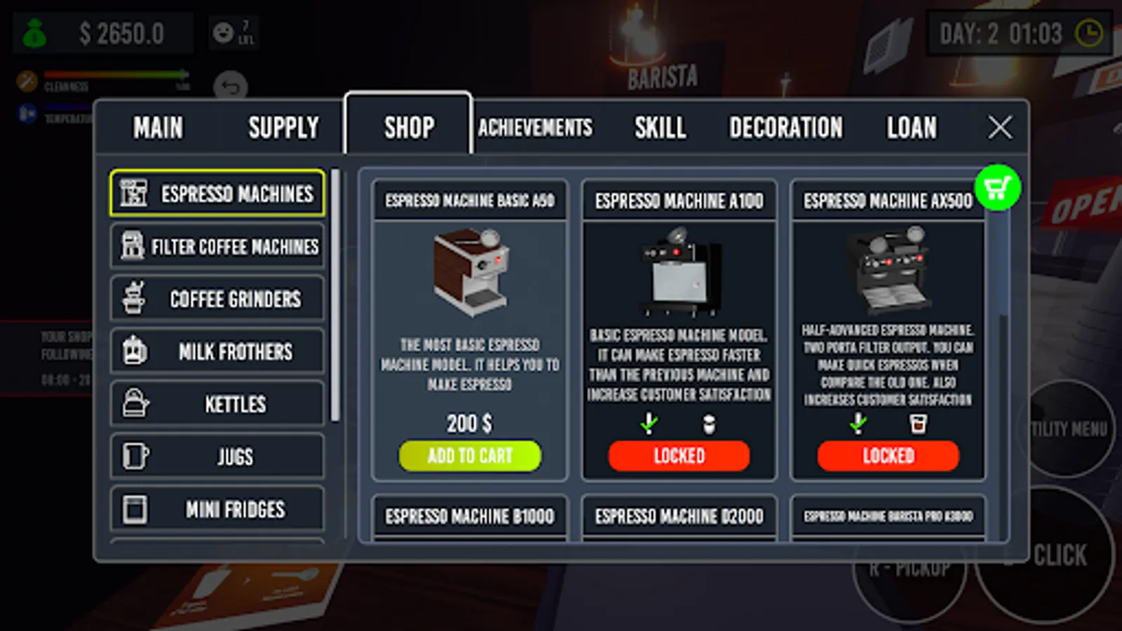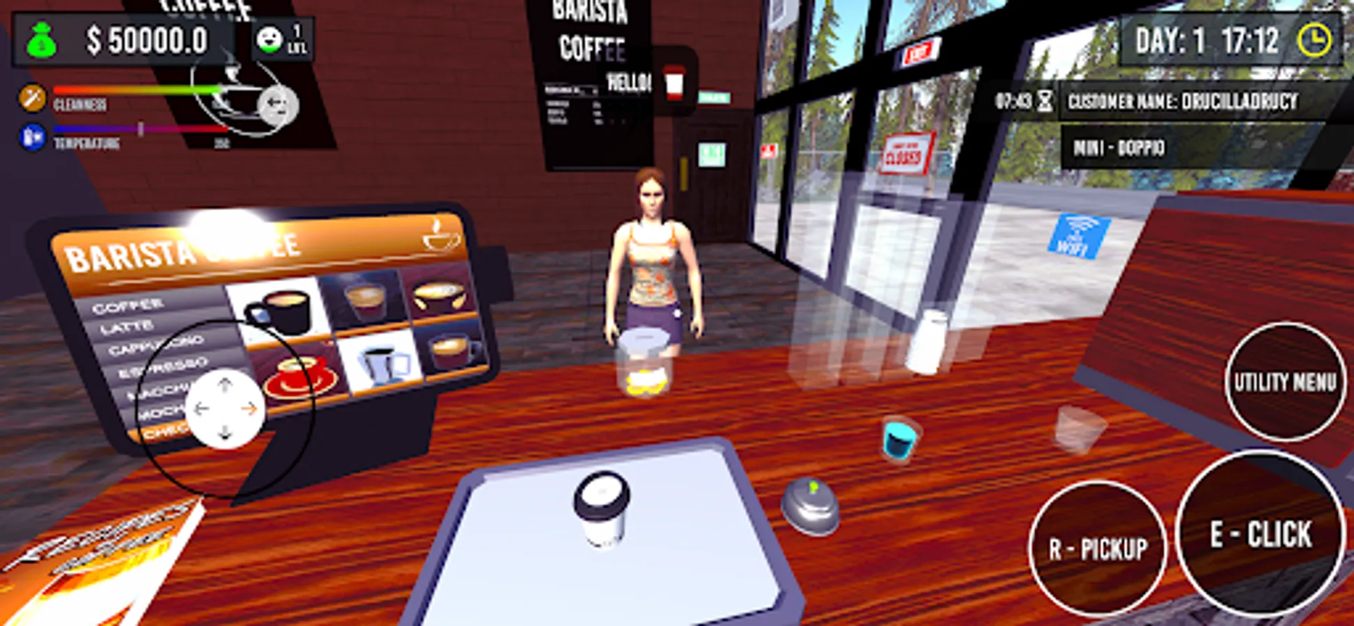 Barista Simulator lets you experience making a wide variety of coffees just like espresso, latte or even your special mix of coffees with a detailed coffee management.