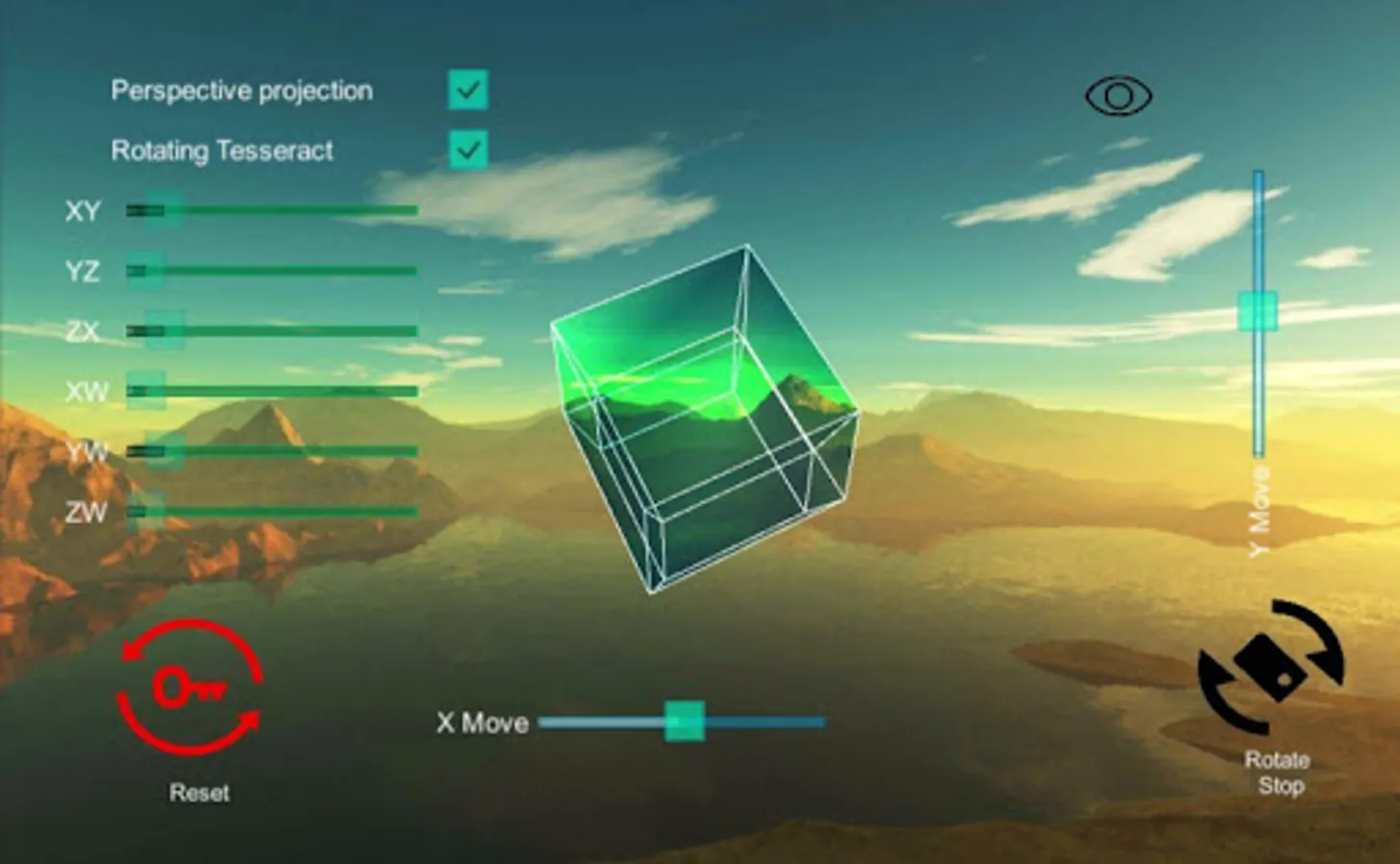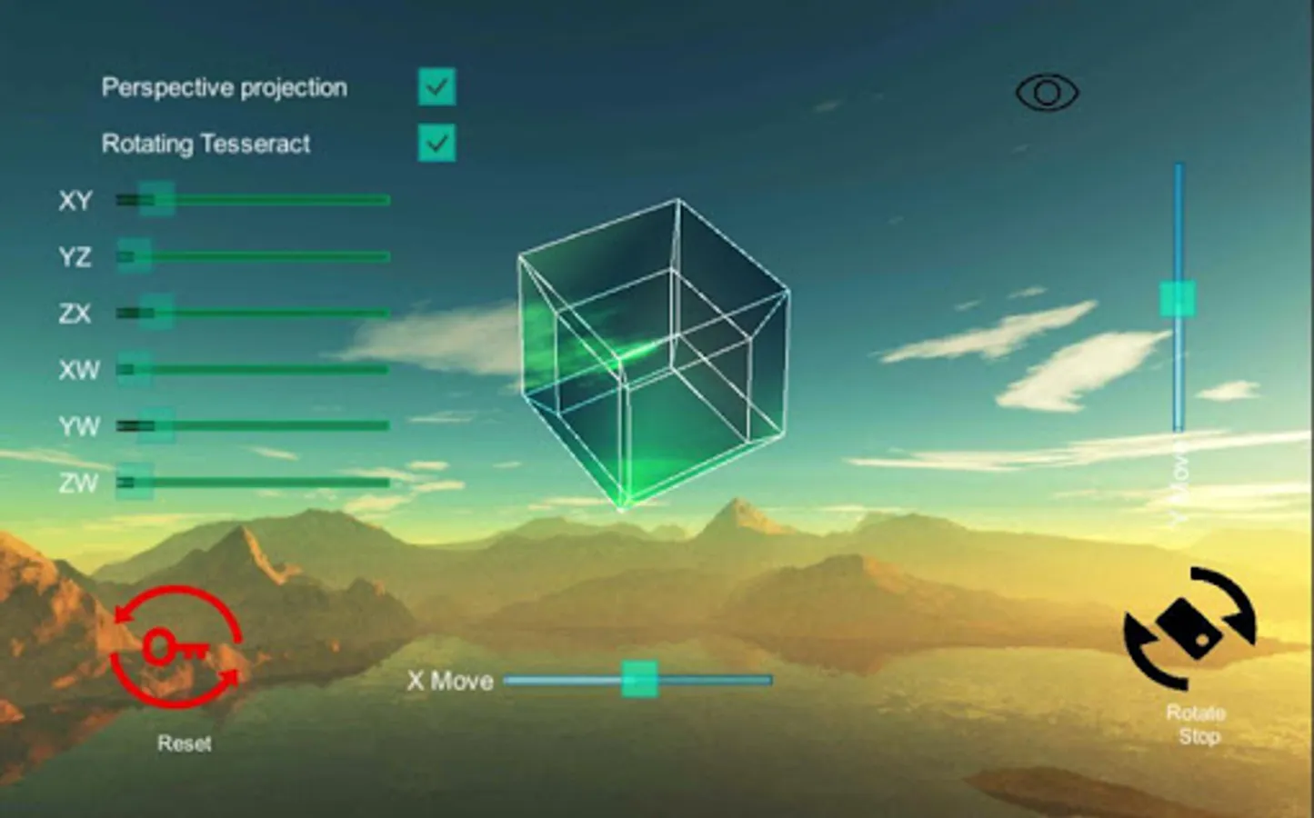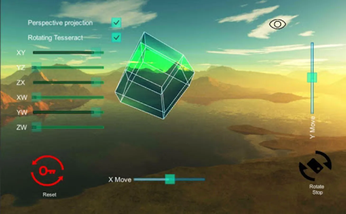 You can see in four dimensions a hypercube, and visibly analyze each of its movements as well as the rotation of the axes.