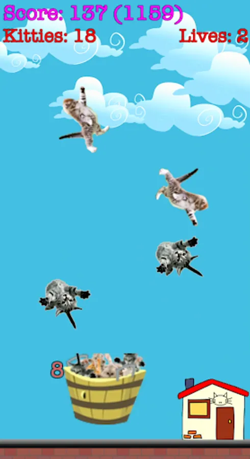 Compete with your friend's scores in this fun and simple game of catching falling cats with a basket you move with your finger!