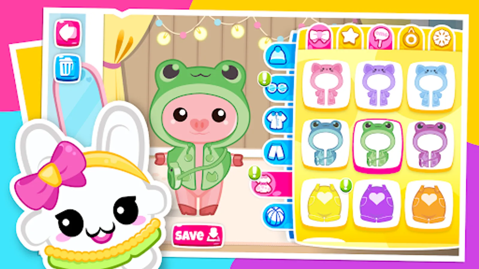 Go to the supermarket and make the necessary purchases for your Piggy's care. You can also choose the color of her fur, eyes or nose.
