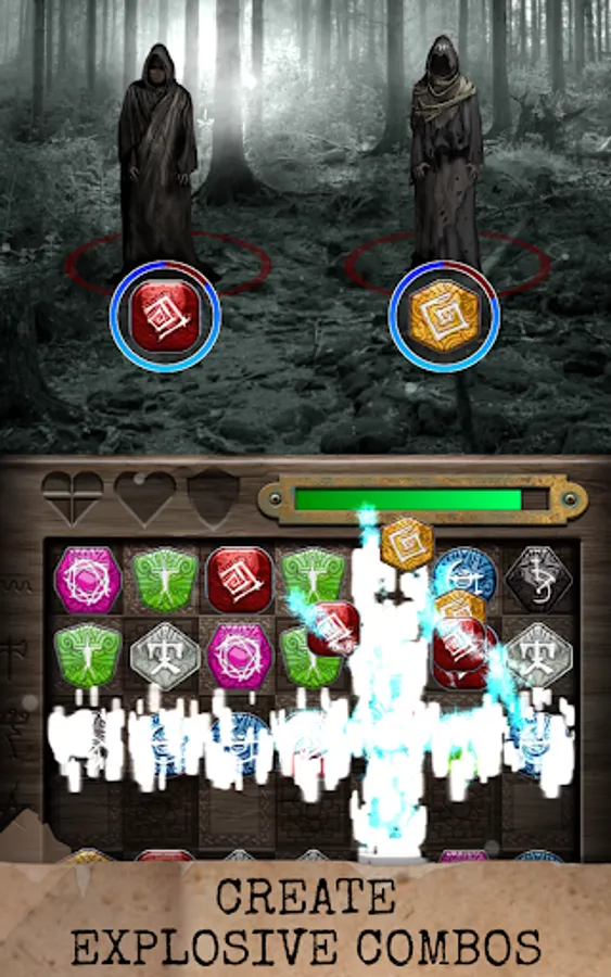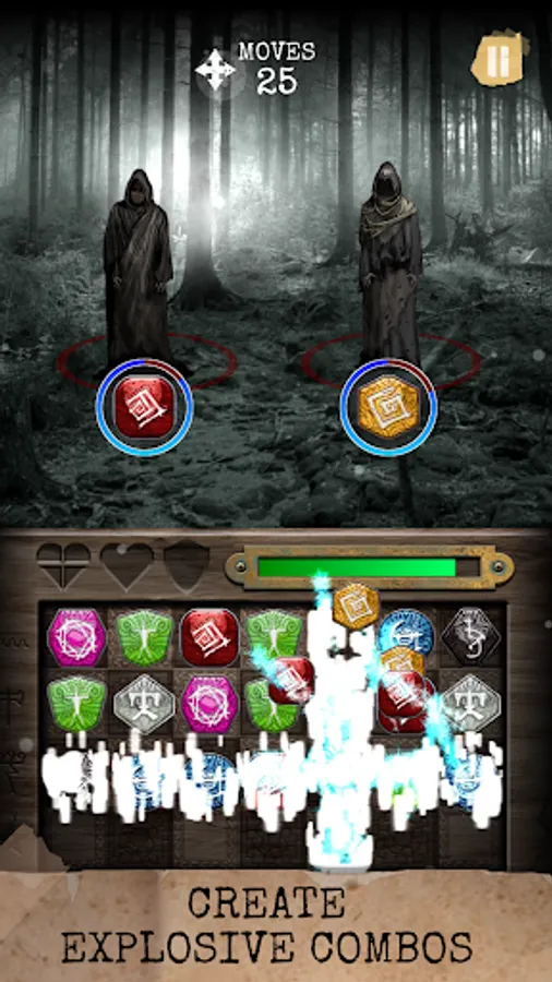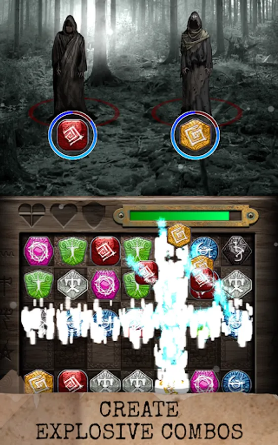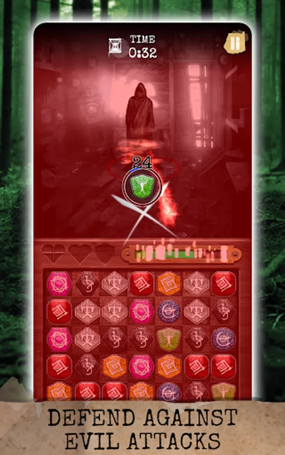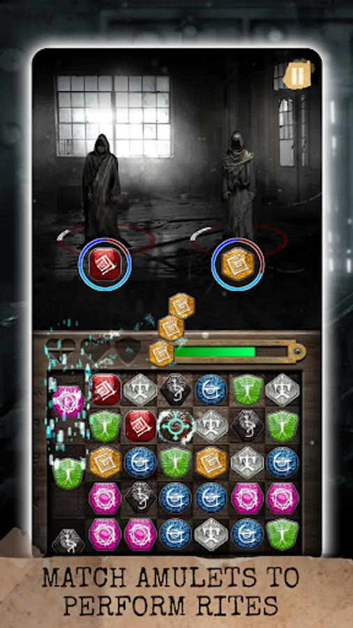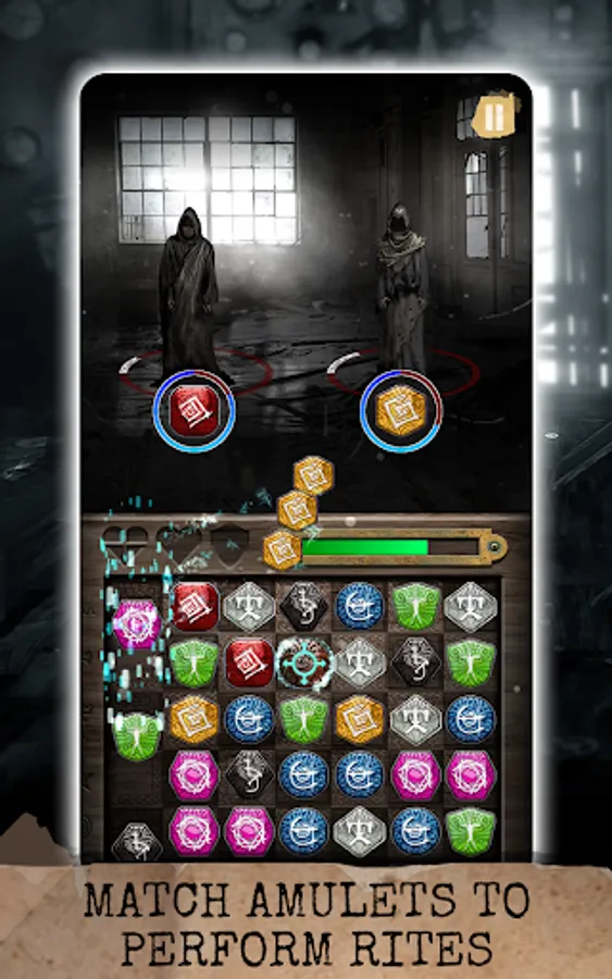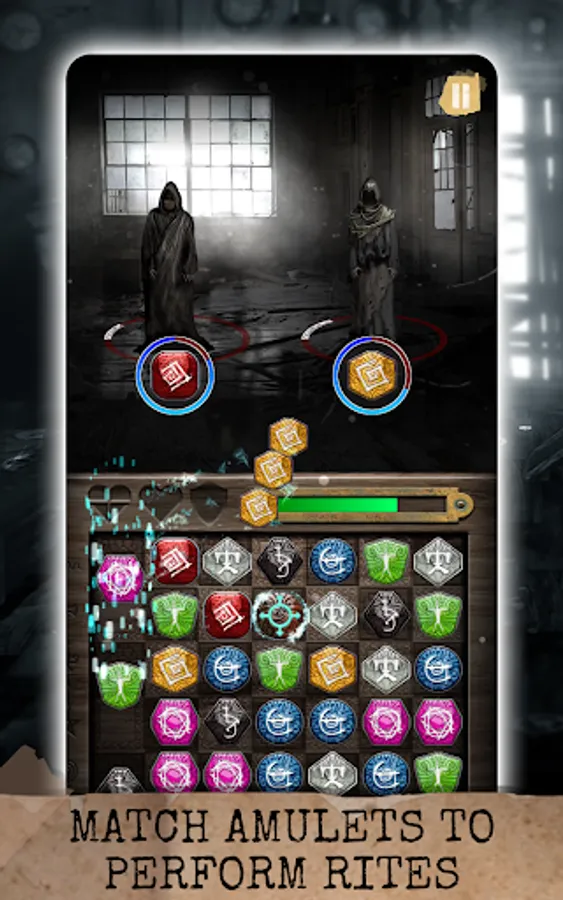 Rituals: Book of Skog employs a sliding match puzzle mechanic, where you sequence amulets with matching symbols on the board to perform rites. This is no easy feat, as even simplest tasks become a challenge in an unsettling atmosphere with an unrelenting evil looking to ruin your play.