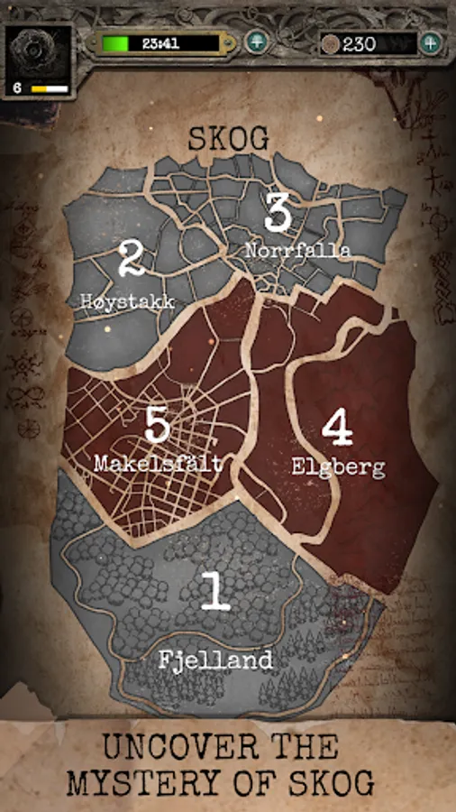 Enveloped in a moody mist and local folk tales, Skog puts on a haunting display that has attracted many brave travellers to explore what lies beneath. Accompanied by the pages of the local guide ‘Book of Skog’, you will embark on a scary journey across the vast woodlands, performing rites and conquering evil.