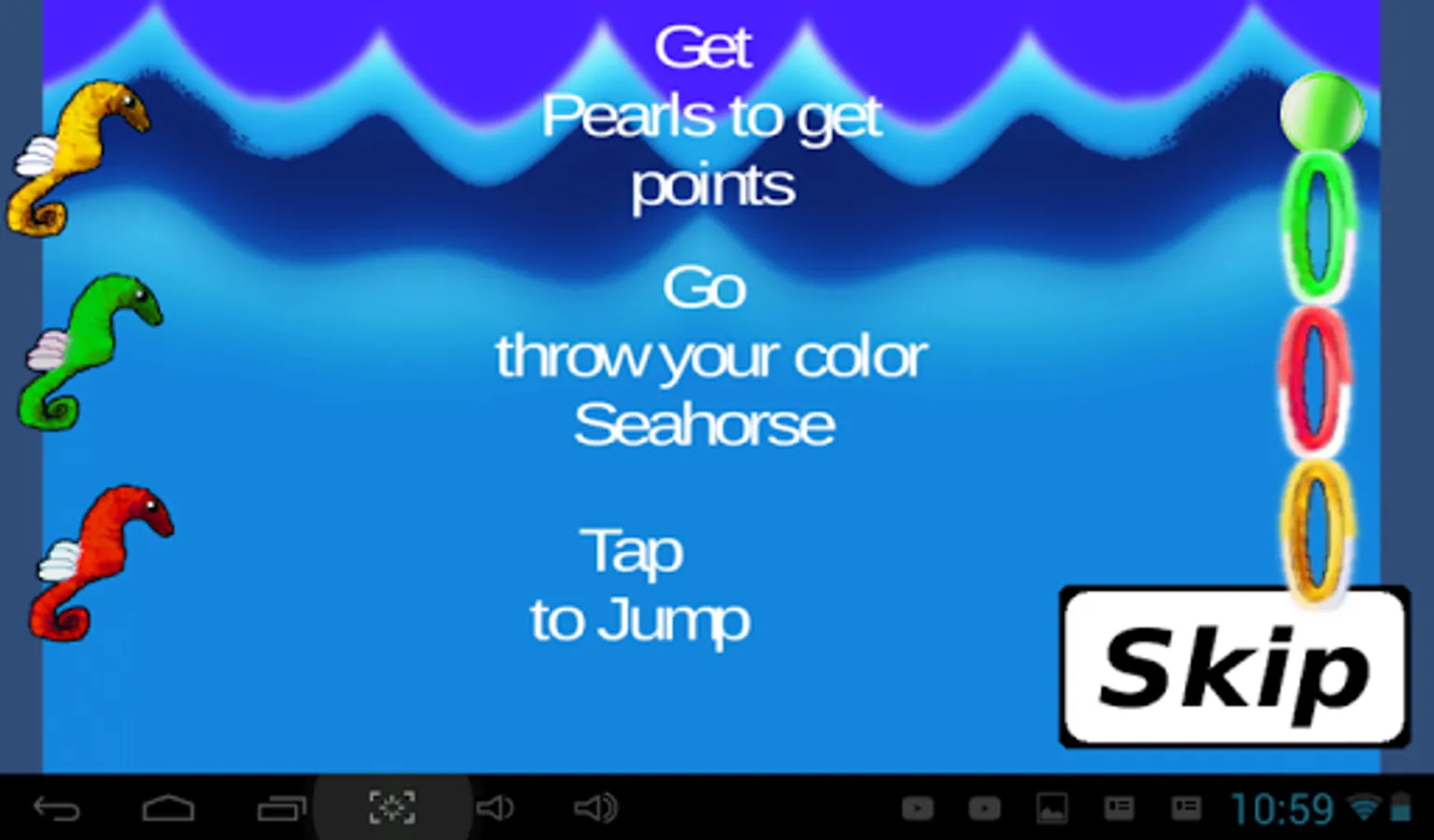 :) Tap the screen at the right time to go through each Ring your Seahorses will Change color every time you get a pearl or go through a ring
