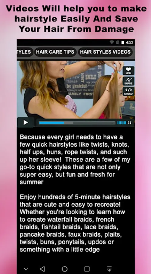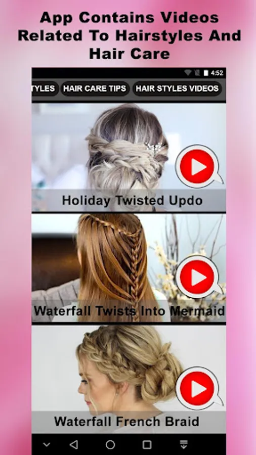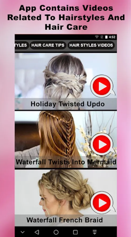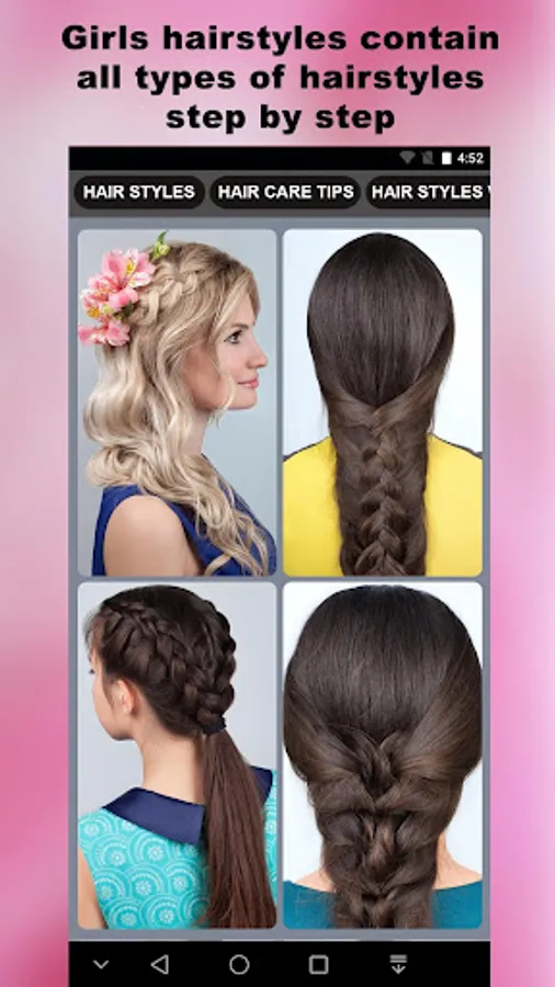"Cute Girls Hairstyles", is a girls hairstyle step by step application in which you can find the best girls hairstyles step by step and girls hairstyle videos. Lots of models of hairstyles are very beautiful. All of the hairstyles are elaborate hairstyles. You can also choose what hairstyle fit your face. Therefore we present a very interesting girls hairstyle step by step application to see hairstyle tutorial to know how to wear a simple hairstyle.