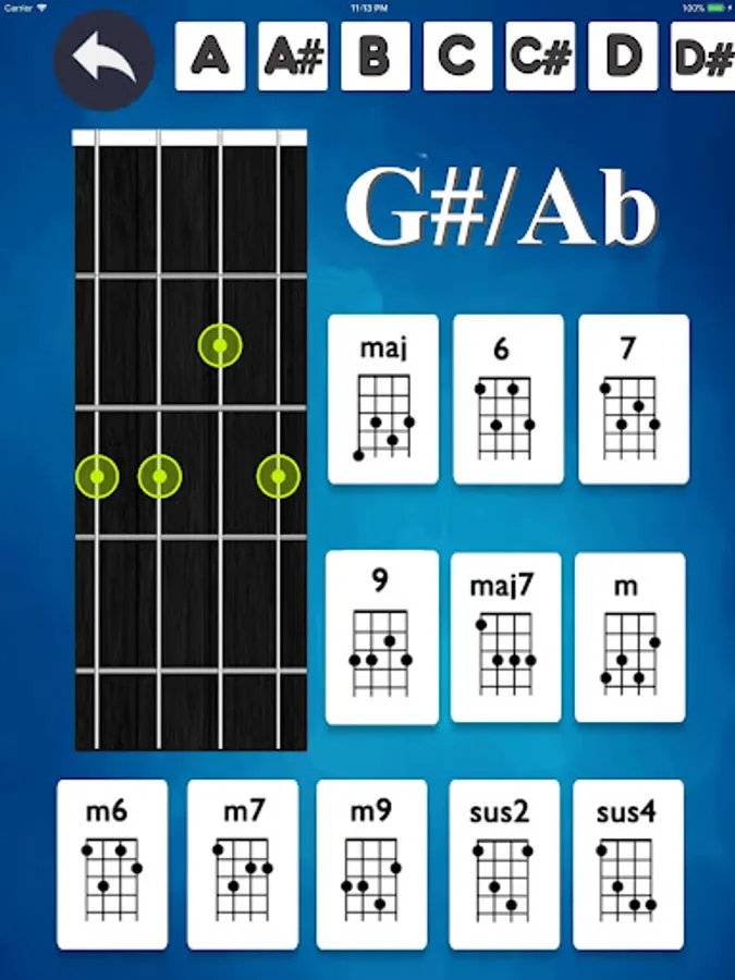 - Listen to all chords by just tapping on them - Perfect if you are about to learn Ukulele