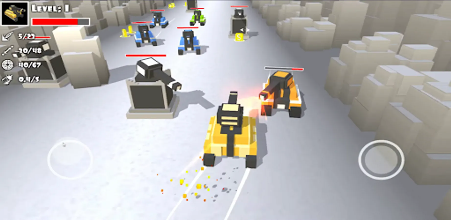 Tankie Attack is an exciting endless level-base game in which you touch on left joystick to control the tank, touch on right joystick to rotate and aim the turret while running on a path.