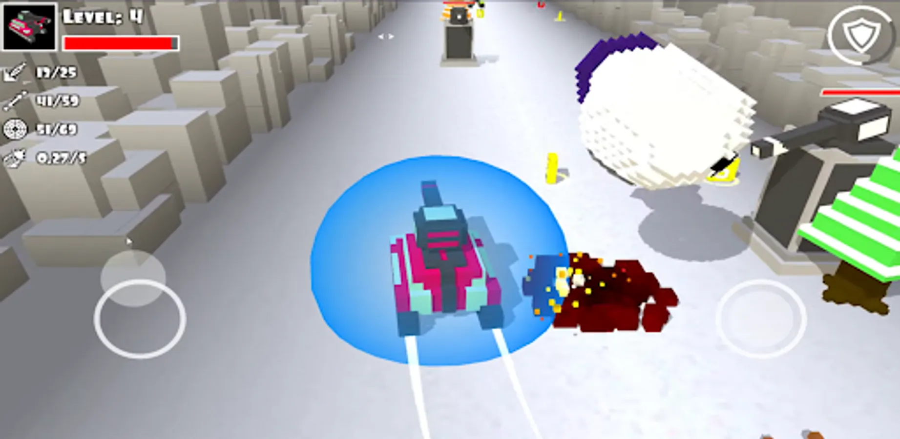 You can also collect boosters to increase your tank’s stats like damage, health, shoot range, accuracy and fire rate, collects coin items to unlock and upgrade new tanks, collect magnet item to attract all coins, collect shield item to enable shield to protect your tank from enemies and complete the level.
