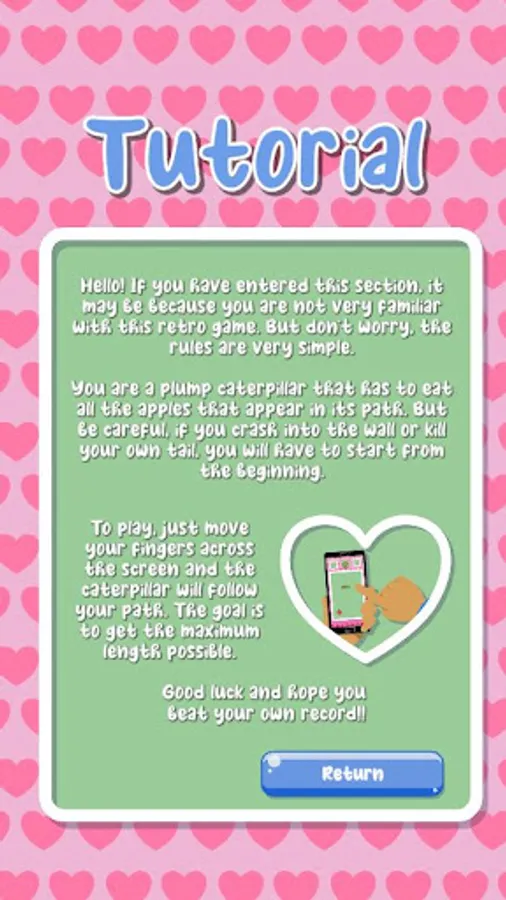 Hello! This is a remake of the classic game of snake. Here you are a chubby caterpillar with a lot of hungry trying to eat all the fruit you see on the ground. Enjoy this classic game with a cute interface.
