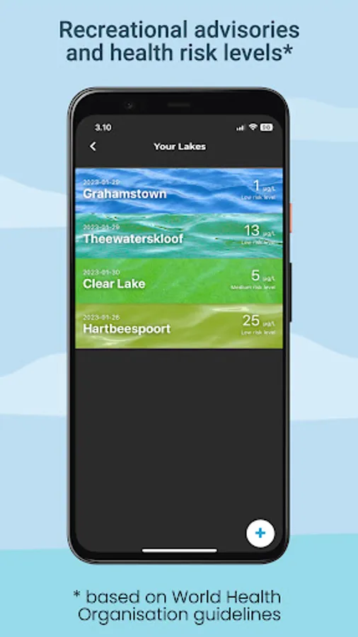 Access cyanobacteria health risk levels based on the World Health Organisation’s guidelines for any lake on earth* from satellite imagery.