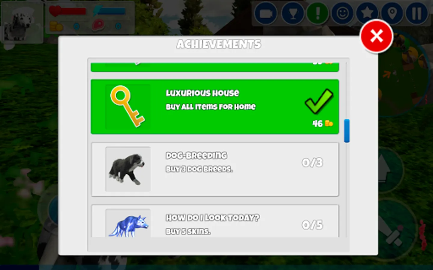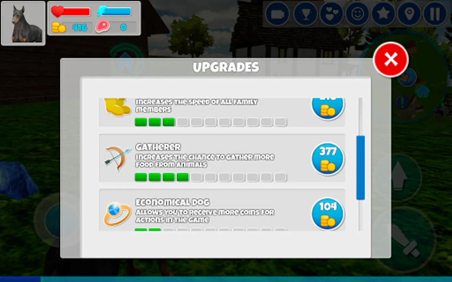 Your dog will be able to create its family. To do this, you need to find a spouse. In the future you will be able to have puppies. Every member of the family needs to be taken care of: you should feed and improve it. At any time, you can change the appearance of your pets as you like.