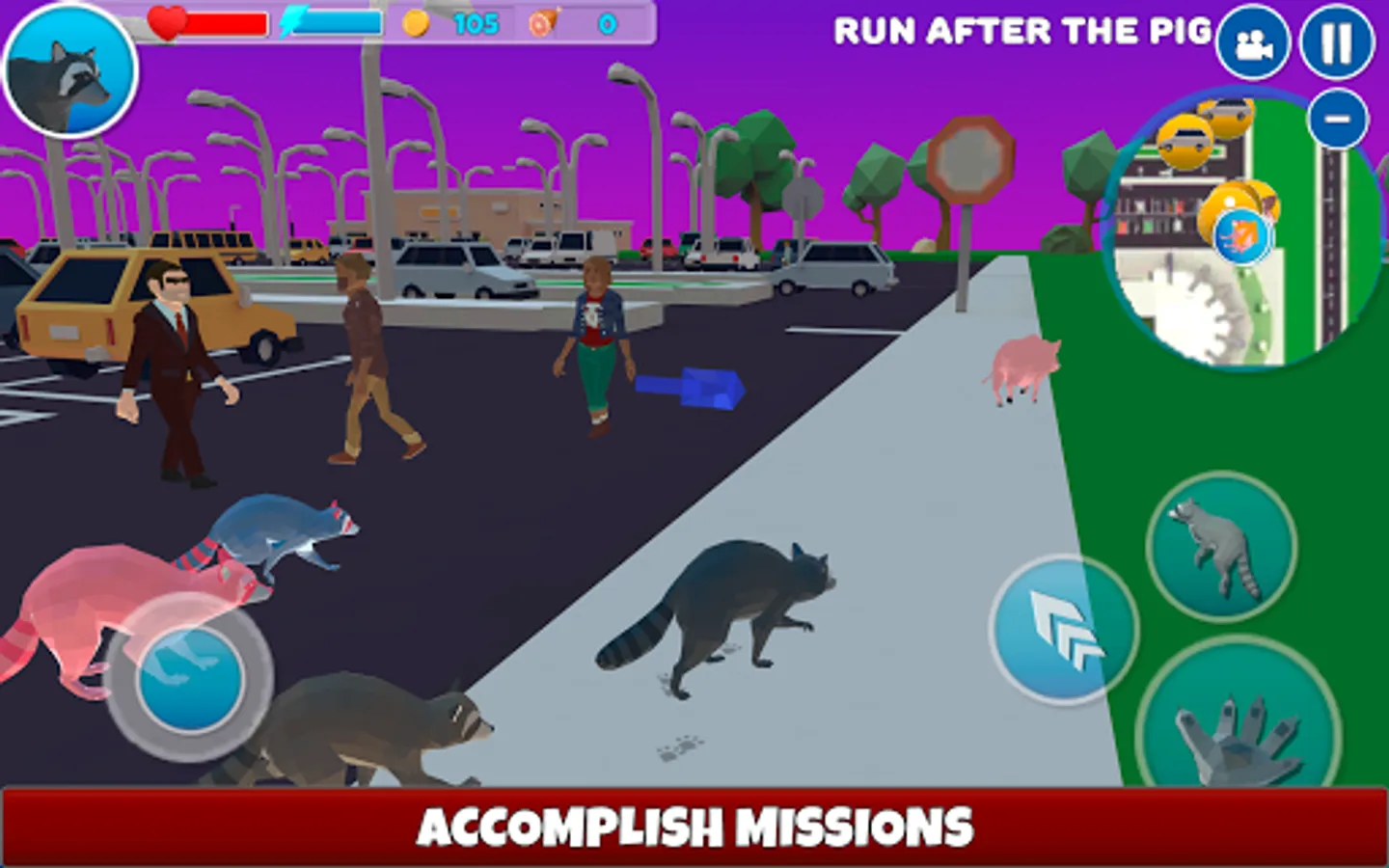 In this simulator you will play as a raccoon. You will explore the big city and the surrounding forest in search of adventure. To survive in the city you’ll need to feed the raccoon and make sure that it does not get into trouble. There are a lot of dangerous things in the forest too. The main danger is predators! In order for the raccoon to develop and grow stronger, you need to help other raccoons.