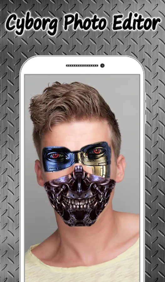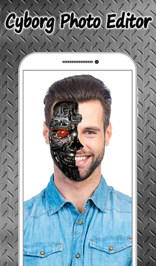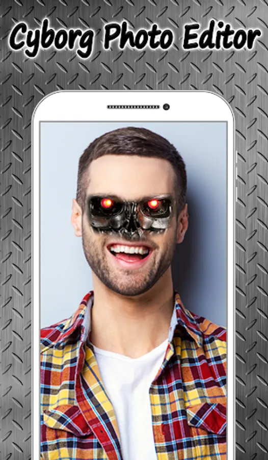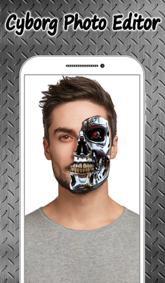 Cyborg Photo Editor details in the photo robot man. The Revolution, Become a cyborg. Chips, screws, plates, wire, laser eye or iron suit. editing photos from cyborg camera, or select an image from the gallery. Robot App make you feel like a robot from the movie or computer game. Be a man of iron. The revolution of the human race, the transformation of people in the world into a cyborg. Genesis has arrived. Cyborg Cam add me microchip or sticking out of the body or costume wires.